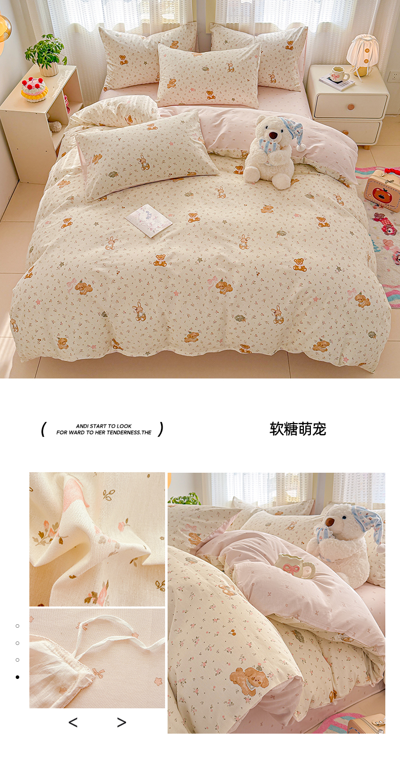 商品名称:呗旺鹿 2026新款全棉40支12868田园卡通小清新系列四件套 软糖萌宠