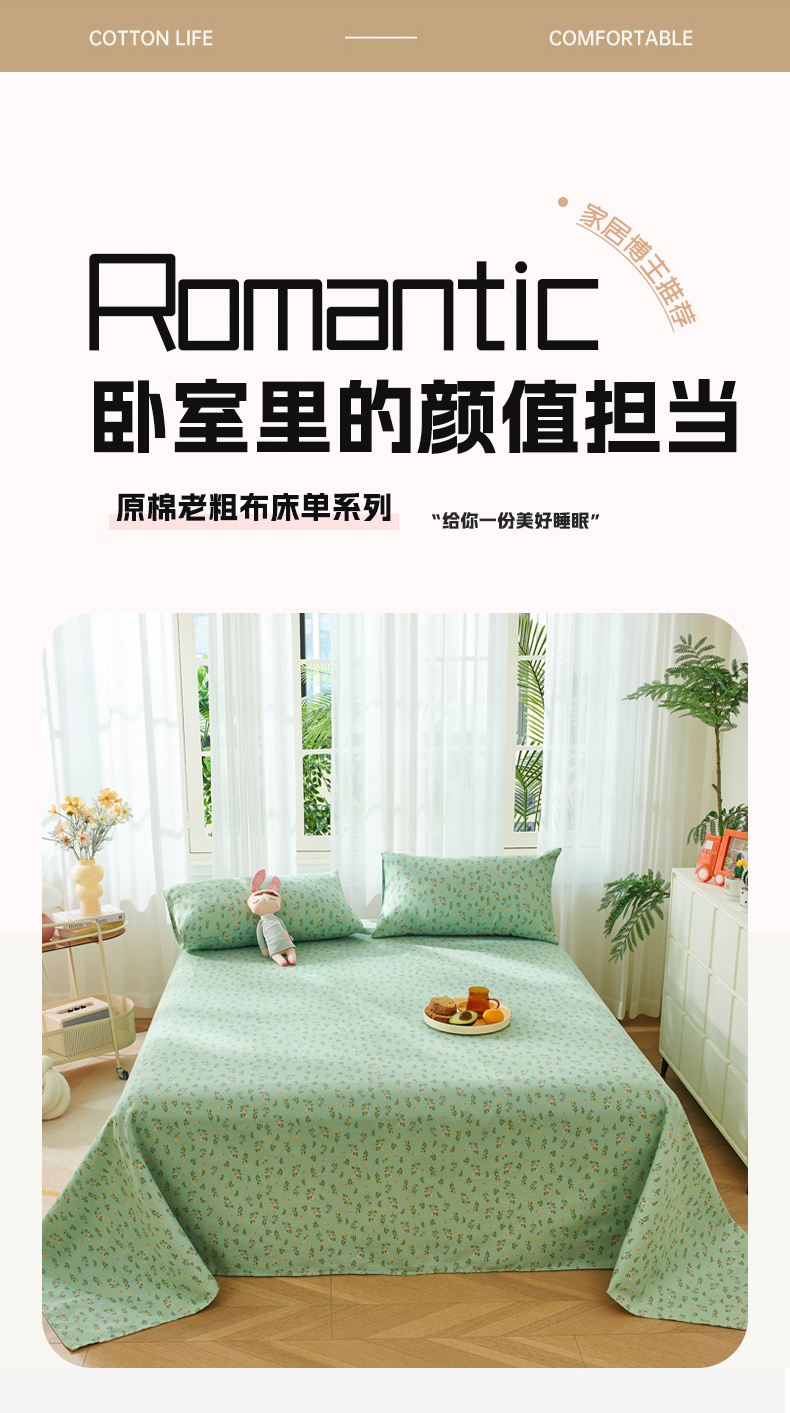 (总)爱彼家纺 2026新款升级细沙印花老粗布床单单品床单床单单件-细沙系列四,花笺,花漾手礼,花屿南瓜,蓝花序,蓝菊绘,山河日立,甜心
