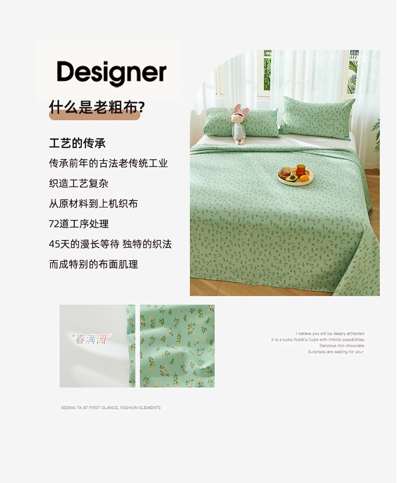 • 91家纺网 家纺一手货源 找家纺 爱彼家纺 2026新款原棉老粗布烫画老粗布印花系列单床单凉席席子三件套 春满园