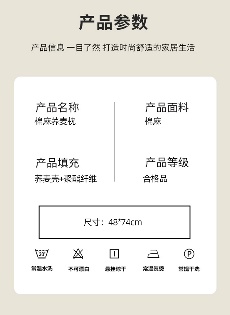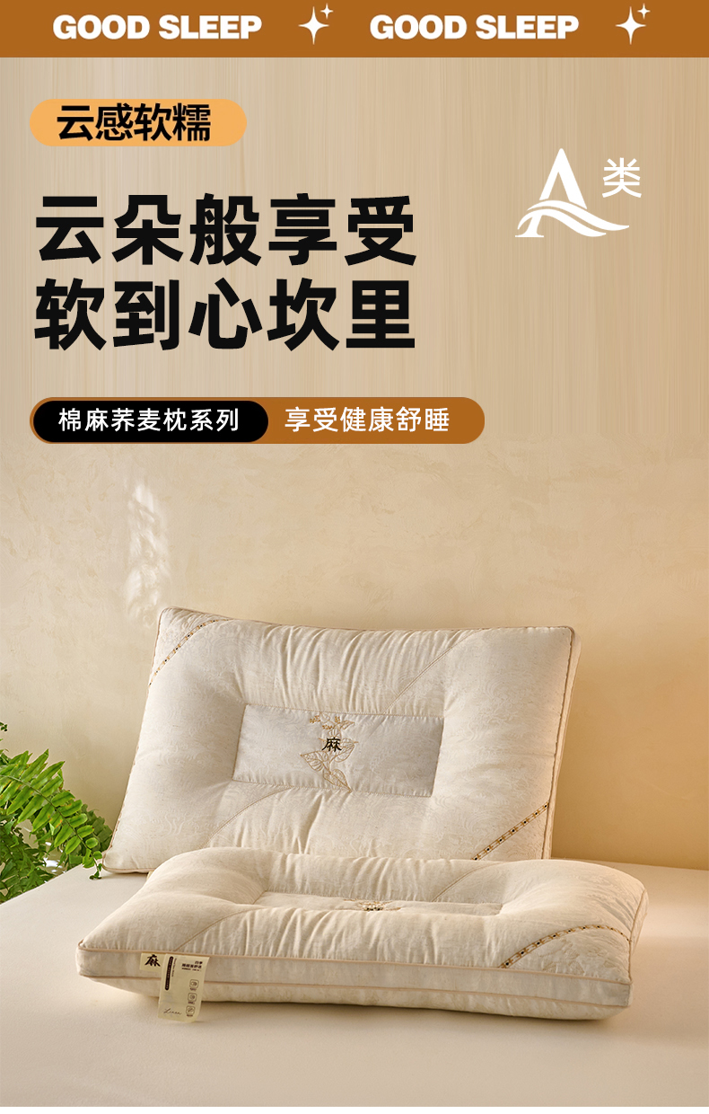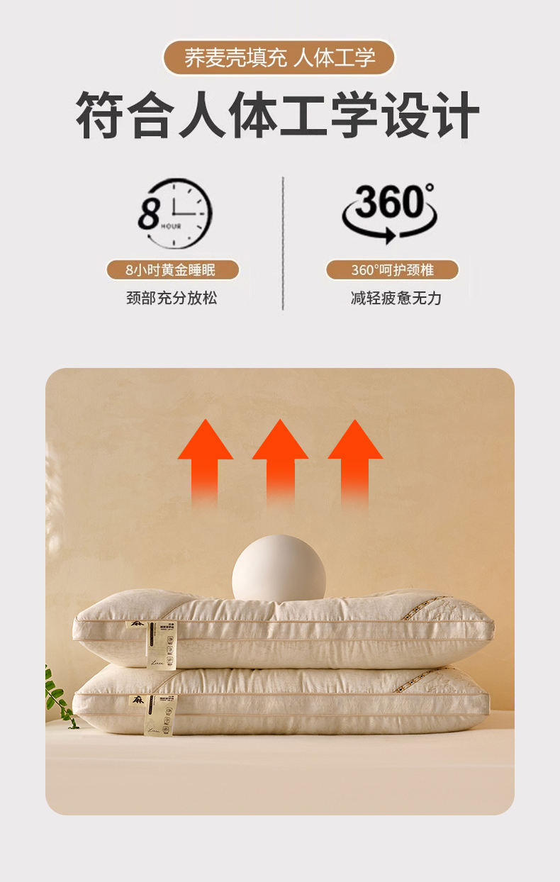商品名称:(总)帝诺妮枕芯坊 2026春夏新款棉麻荞麦枕 枕头枕芯