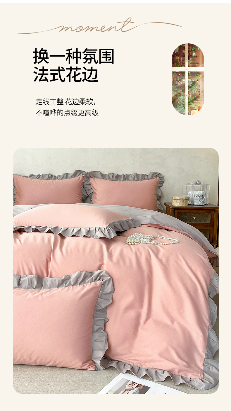 (总)艾迪尚家纺 2026新款法式韩版荷叶边纯色长绒棉四件套,薄荷青灰,冰川蓝香草白,茉绿奶芙,奶芙慕粉,青提絮语,柔杏浅绿,瑞绿慕斯粉,雾蓝杏语,云白芽绿,云灰仙女粉