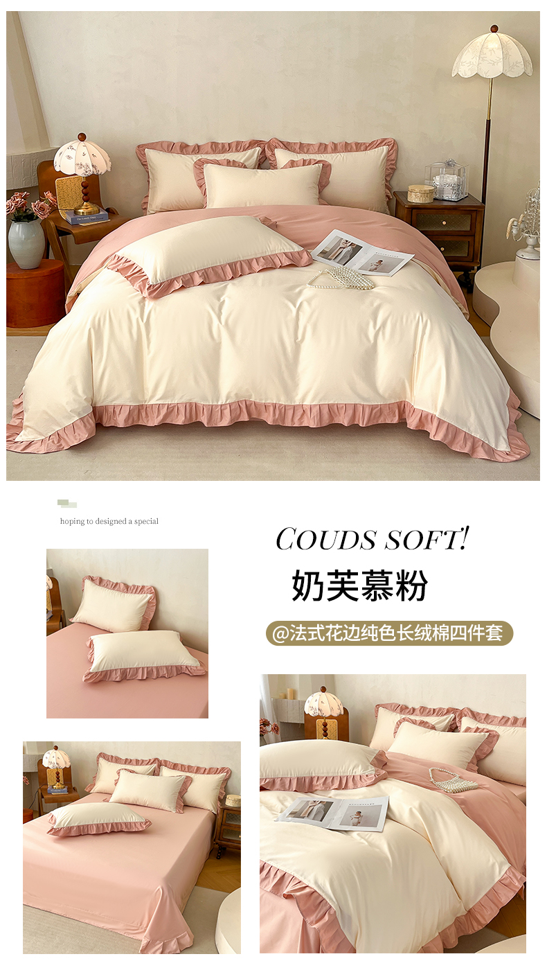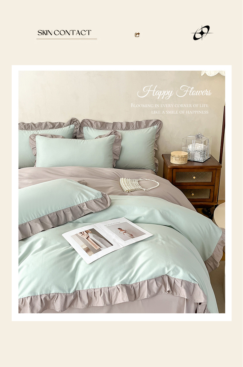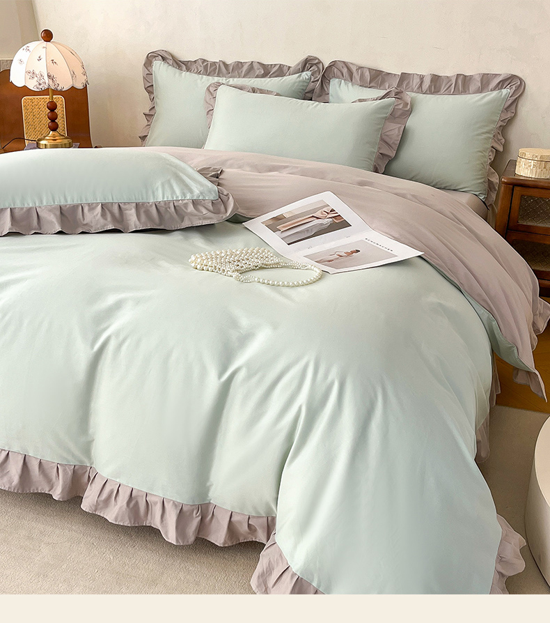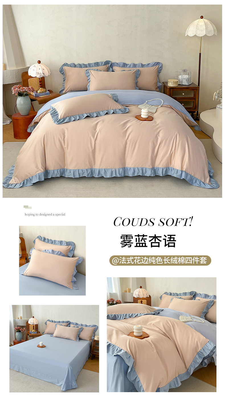 当前位置: 91家纺网 > 商品网购 > 床品套件 > 四件套 > 全棉普通四件套 > 艾迪尚家纺 2026新款法式韩版荷叶边纯色长绒棉四件套 薄荷青灰