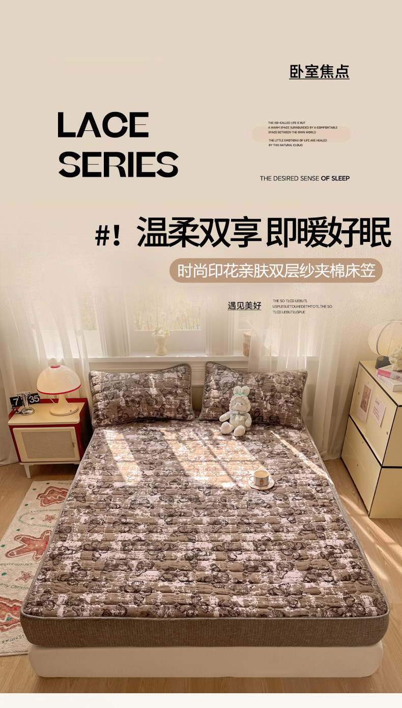 (总)沐慕 2026新款高克重印花云感皱皱纱夹棉床笠