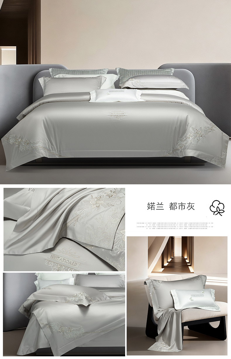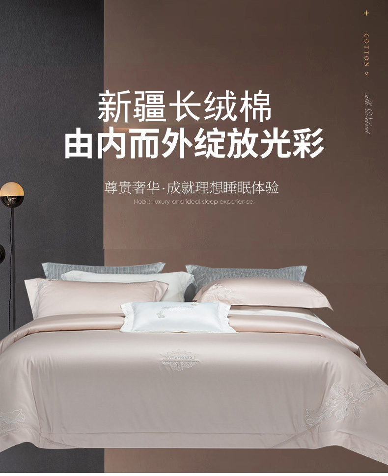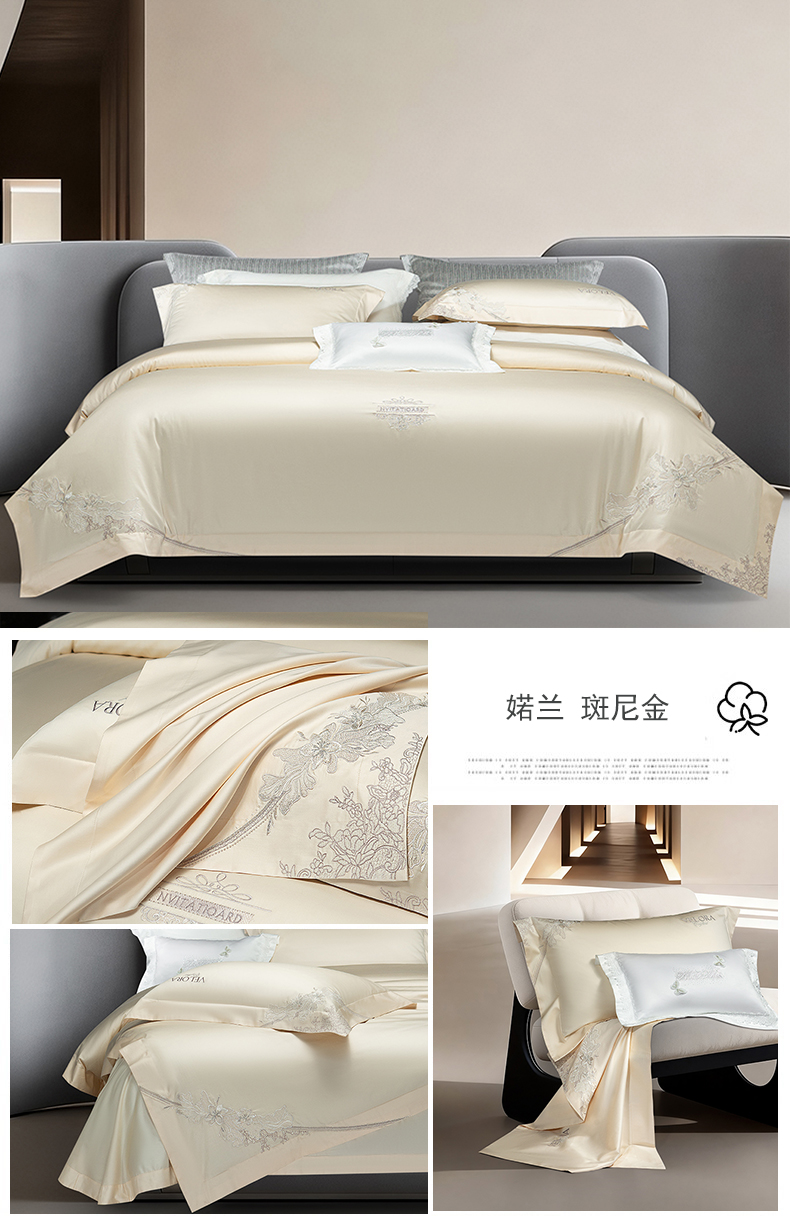 (总)诗黛尔 2026春夏新款长绒棉刺绣四件套黎境系列,黎境-香槟金,黎境-极光蓝,黎境-卡其色,黎境-落樱粉,黎境-绅士灰