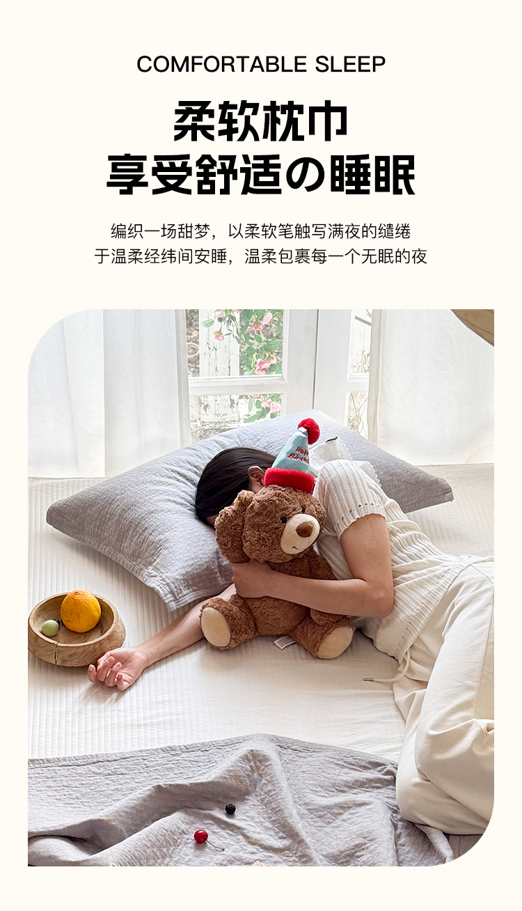 (总)沐瑟家纺 2026新款纯棉四层纱布枕巾-华夫生活,华夫生活-浅咖,华夫生活-深灰,组合图