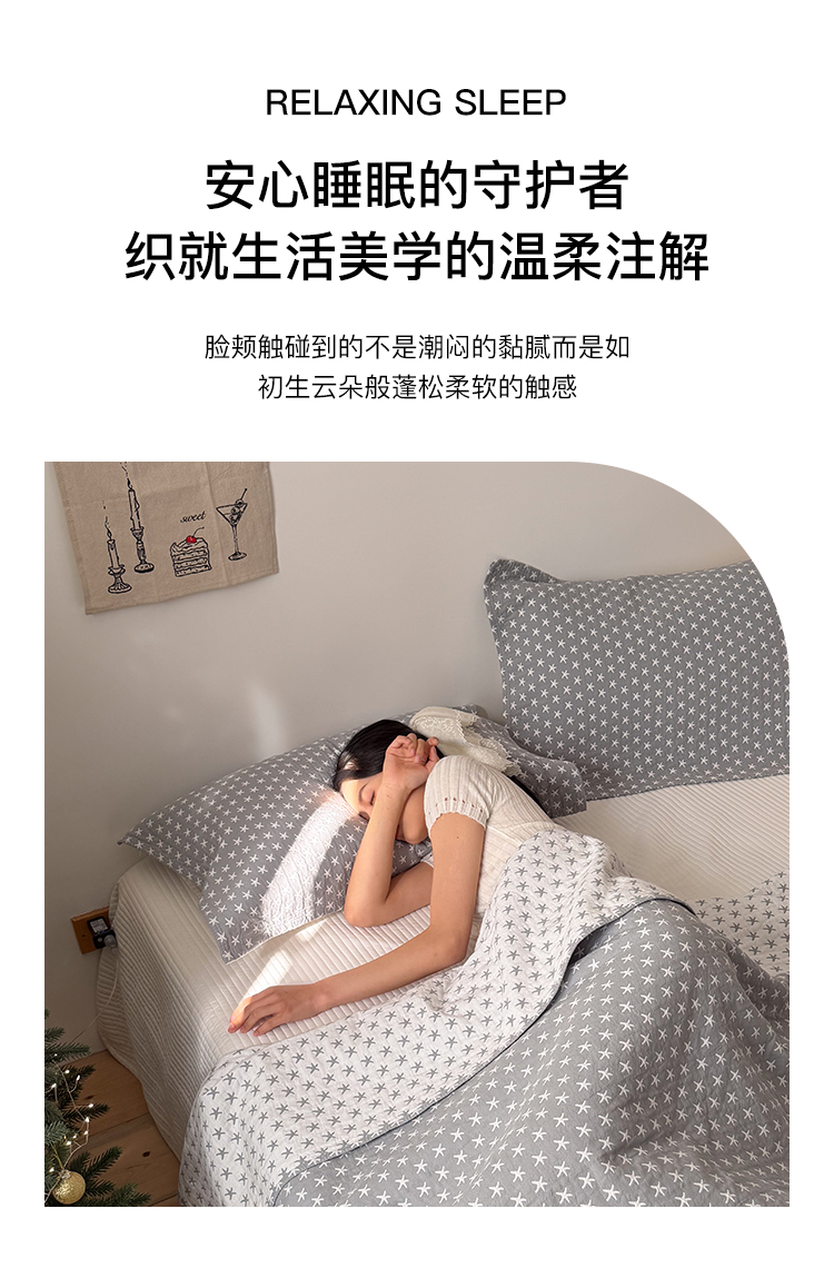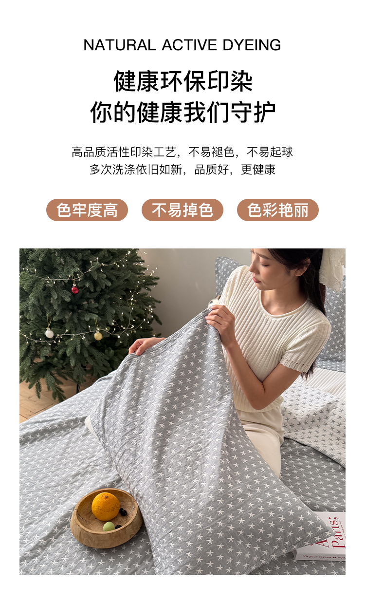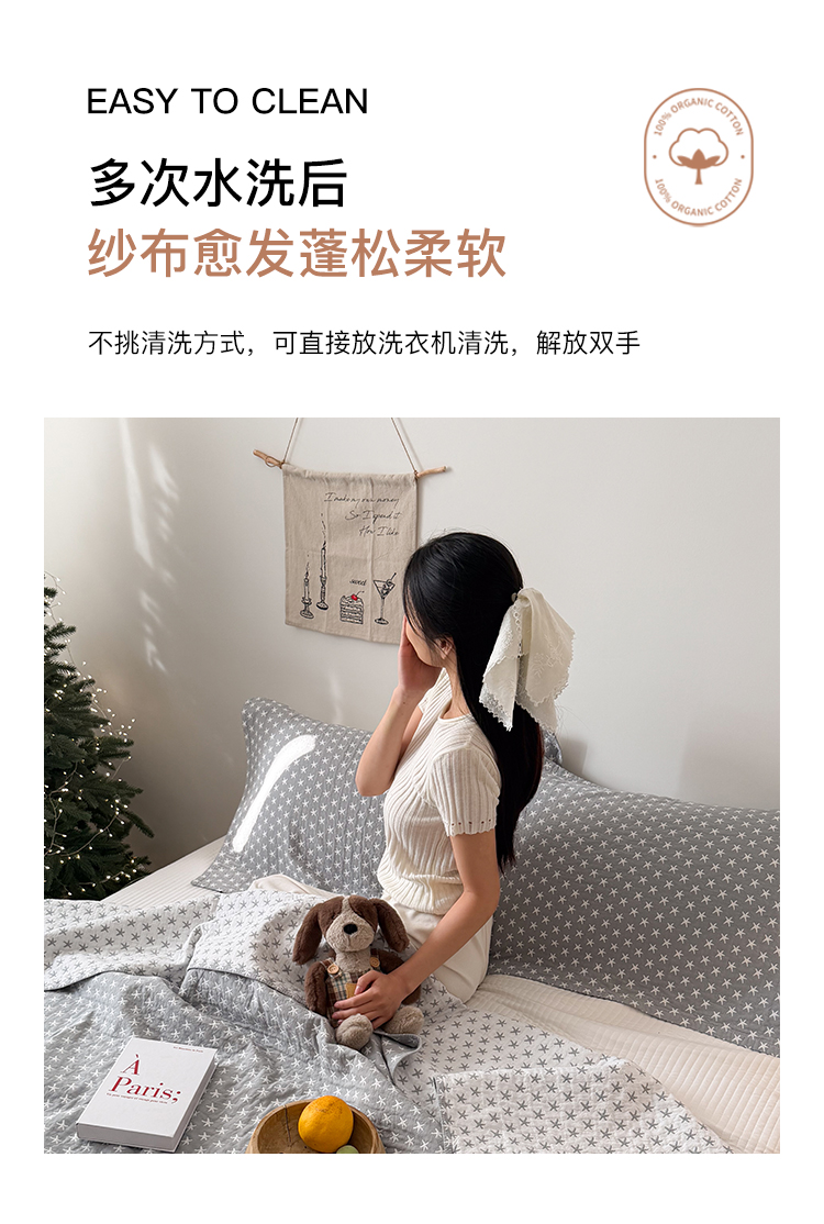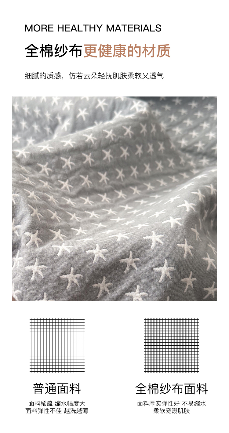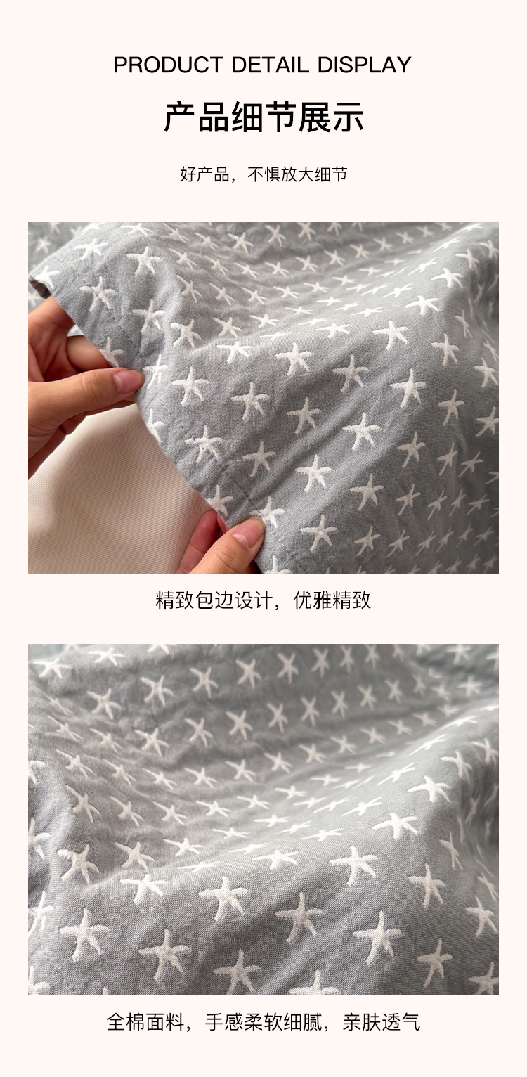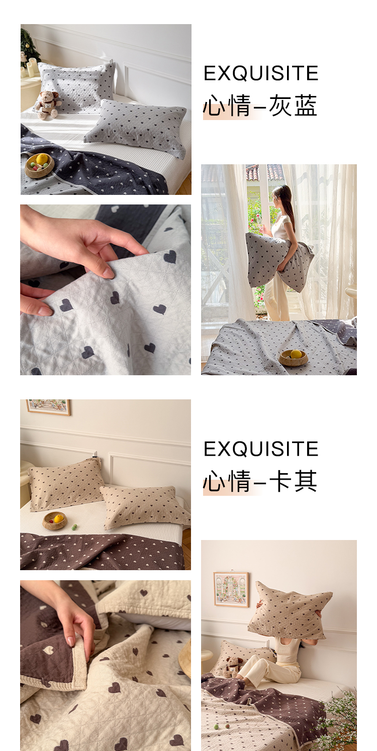 (总)沐瑟家纺 2026新款全棉四层纱布床盖-星星和心情系列,心情-粉色,心情-灰蓝,心情-卡其,星星-黄色,星星-灰色,星星-蓝色,星星-紫色,组合
