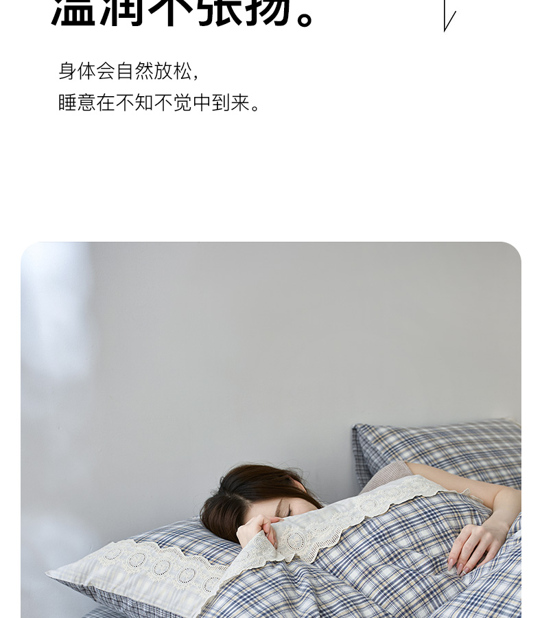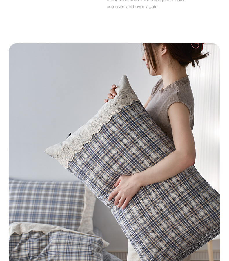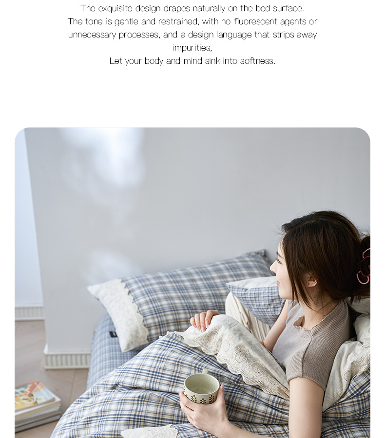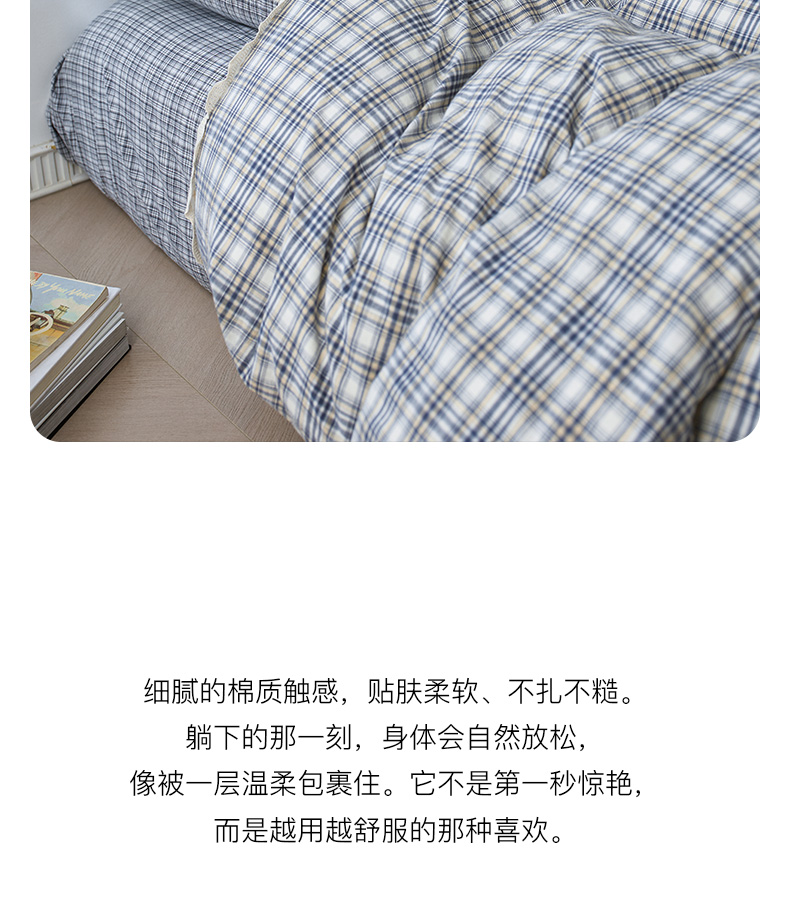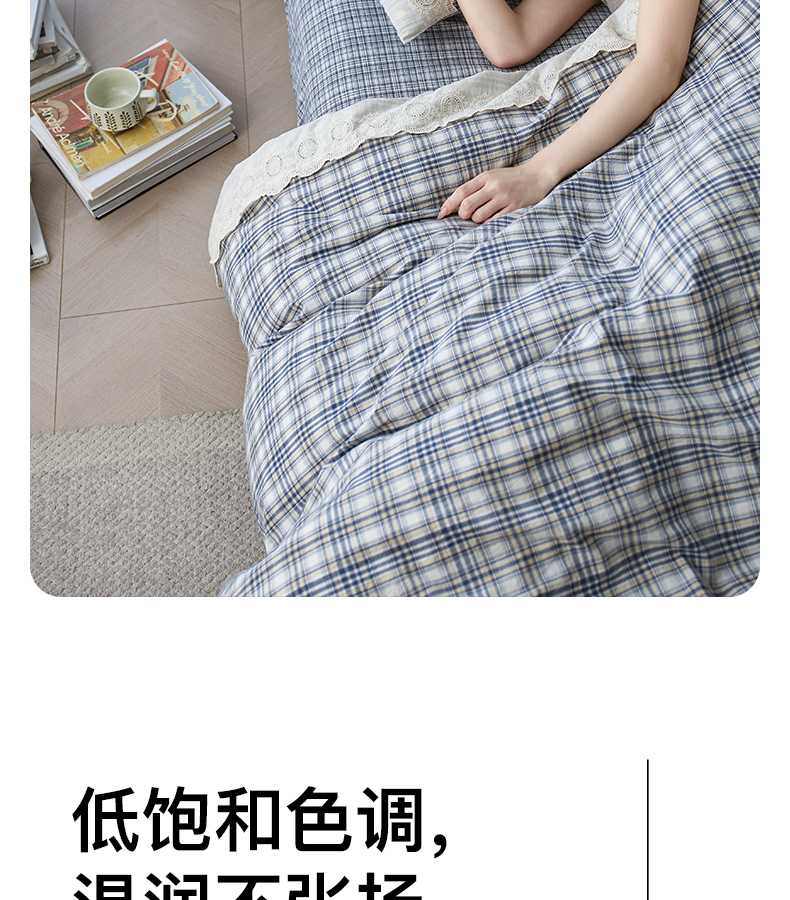 商品名称:卡姿家纺 2026春夏色织水洗棉文艺小格子花边款 利奥-烟蓝