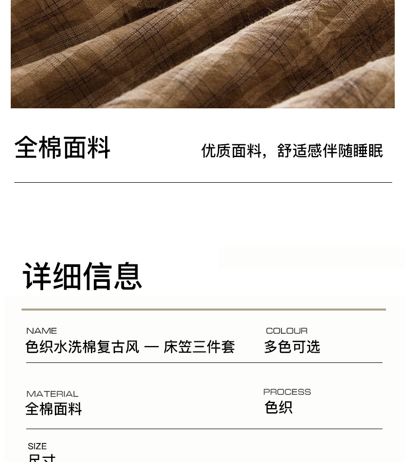 商品名称:(总)卡姿家纺 2026春夏色织水洗棉复古风 — 床笠三件套