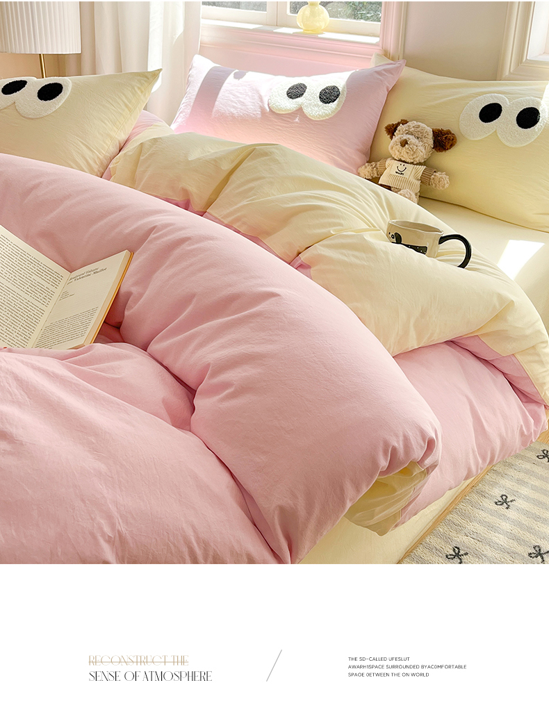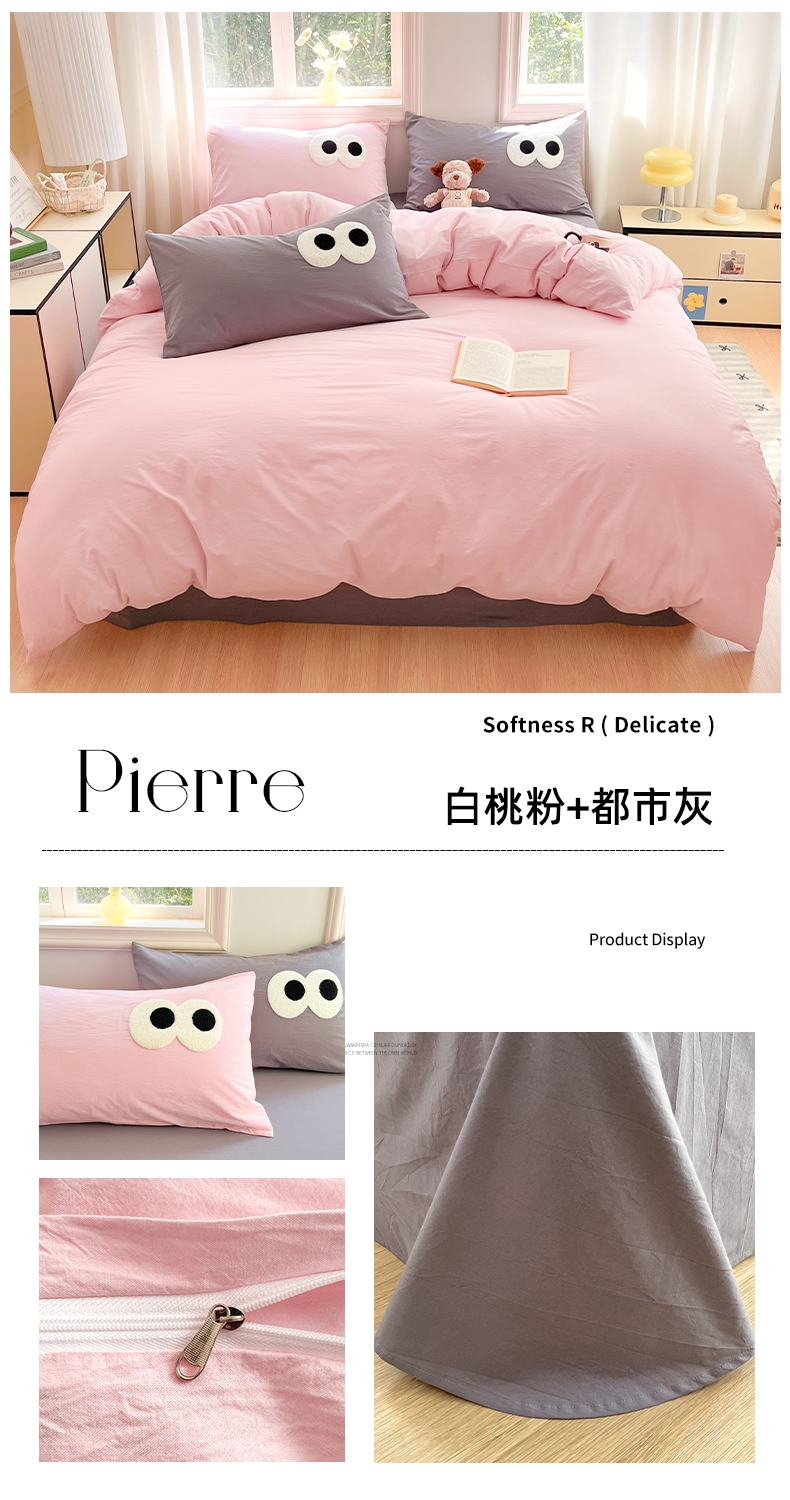 (总)禧澜庭 2024新款纯棉全棉水洗棉斜纹无印风纯棉四件套三件套,梵星蓝+奶黄,湖蓝+梧桐灰,抹茶绿+奶茶,奶昔白+卡其,奶昔白+抹茶绿,奶油粉+梧桐灰,驼色+奶茶色,银灰+梧桐灰,优雅紫+香叶粉