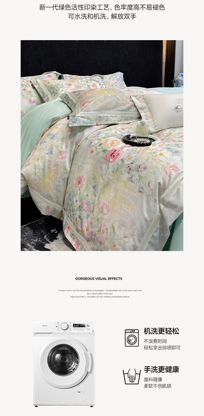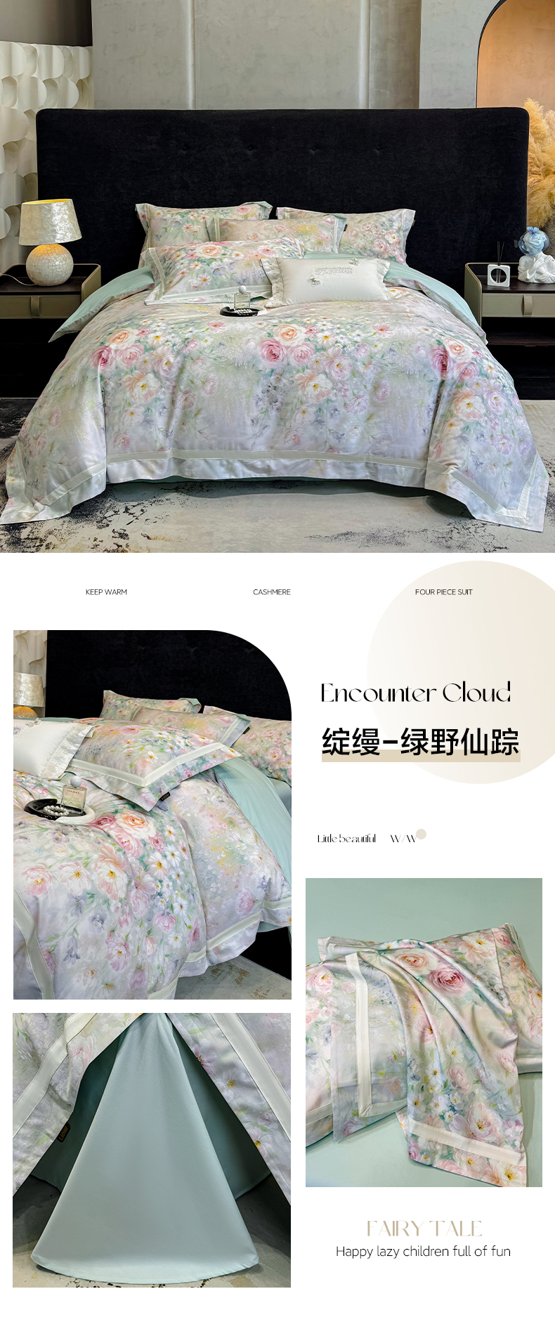 当前位置: 91家纺网 > 商品网购 > 床品套件 > 四件套 > 长绒棉四件套 > 欣宜家纺 2026新款50x50s纯棉全棉埃及长绒棉刺绣绣花床上四件套【含高端礼盒】-绽缦 绽缦-绿野仙踪