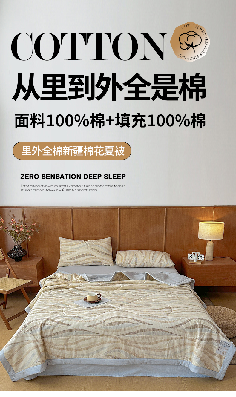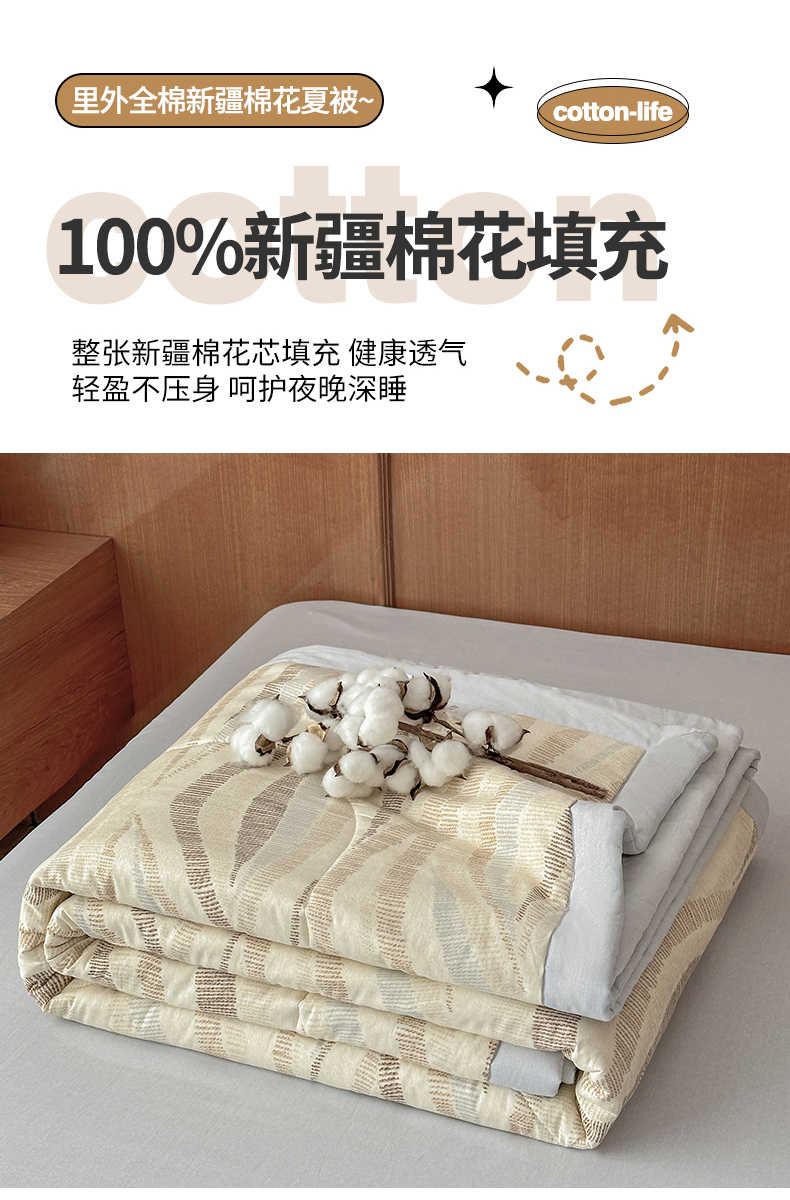 • 91家纺网 家纺一手货源 找家纺 尊妙被业 2026新款里外全棉100%新疆棉花夏被被子被芯-简约风 浪织纹