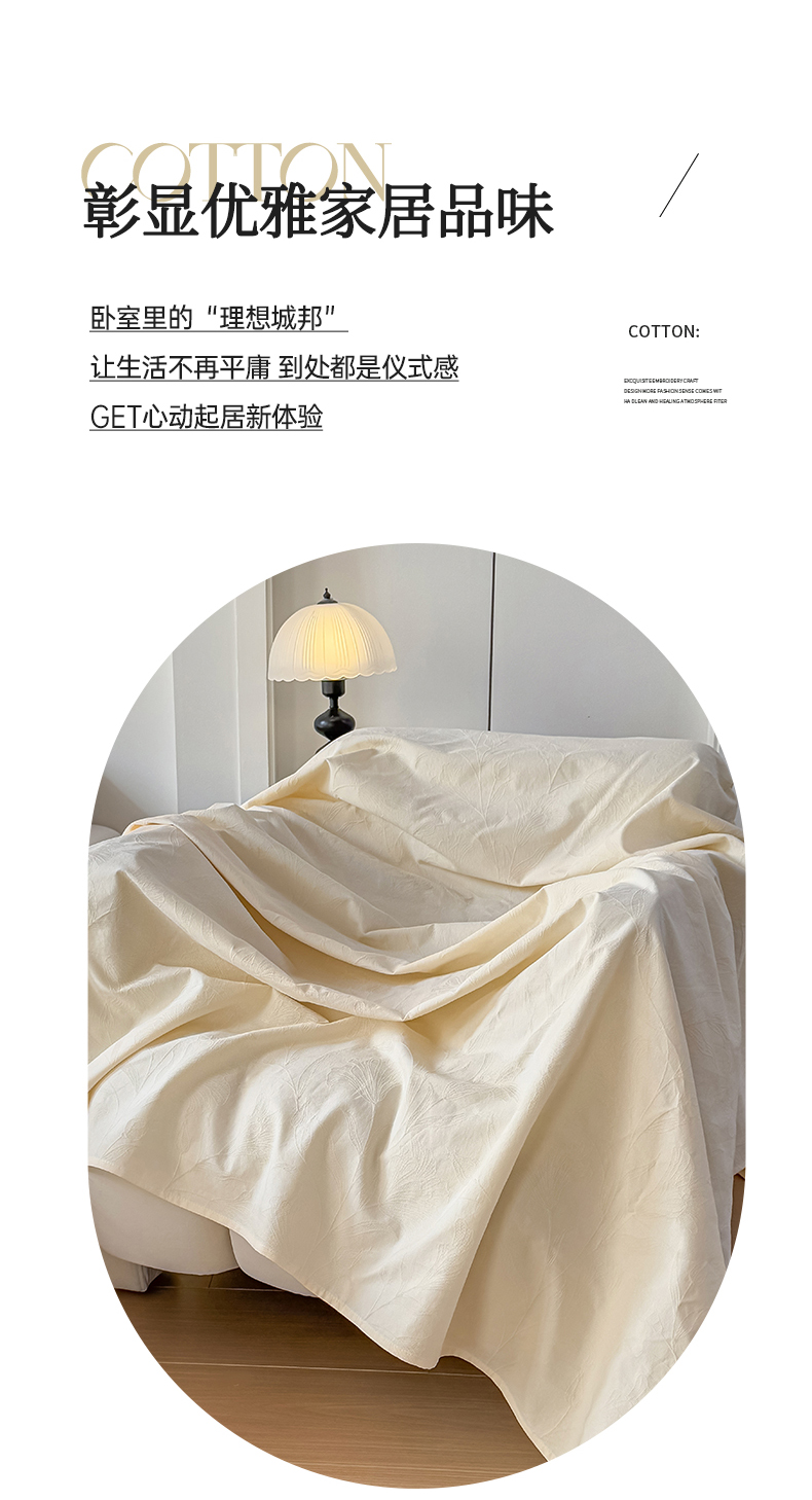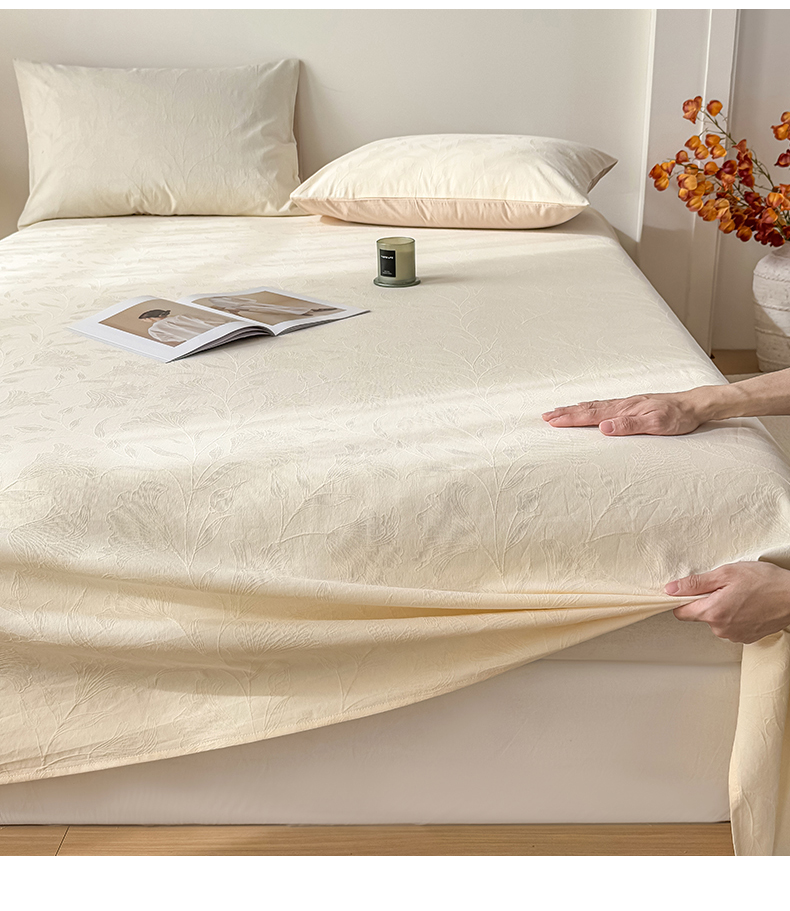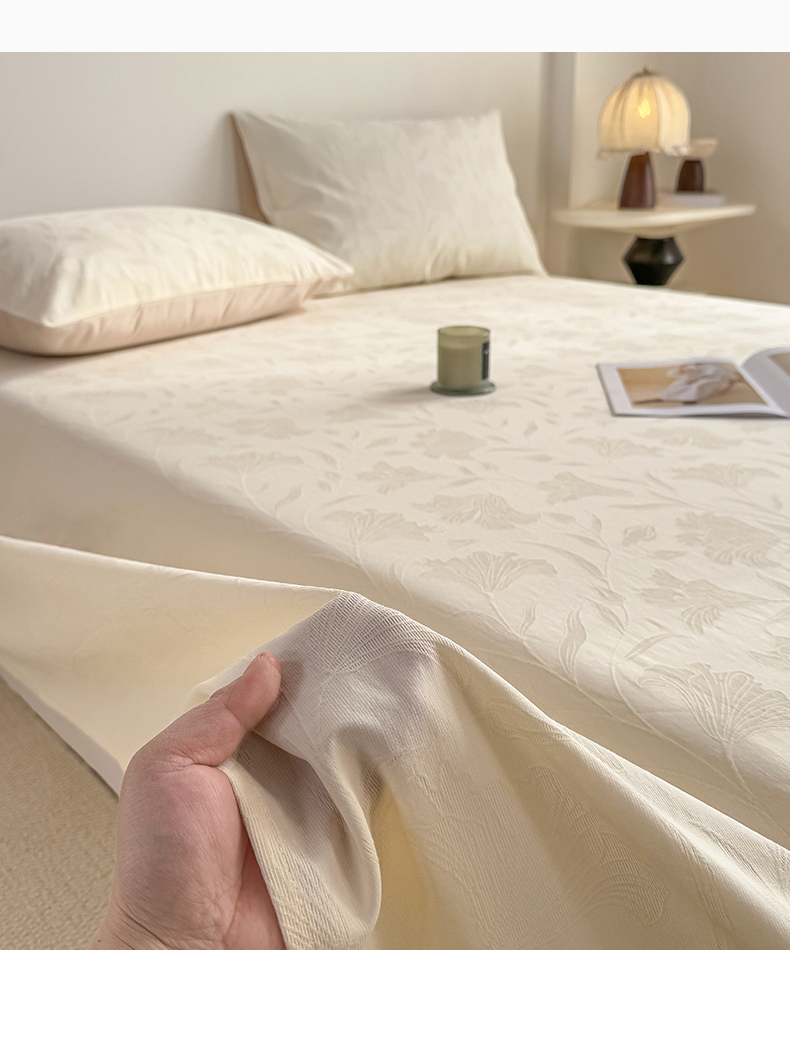 商品名称:女子家纺 2026新款全棉厚织三层水洗色织提花床单 芳菲-杏仁奶霜