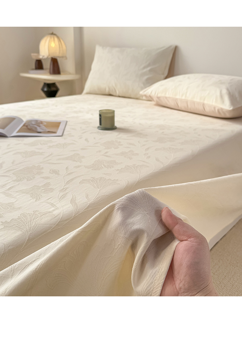 女子家纺 2026新款全棉厚织三层水洗色织提花床单 芳菲-杏仁奶霜