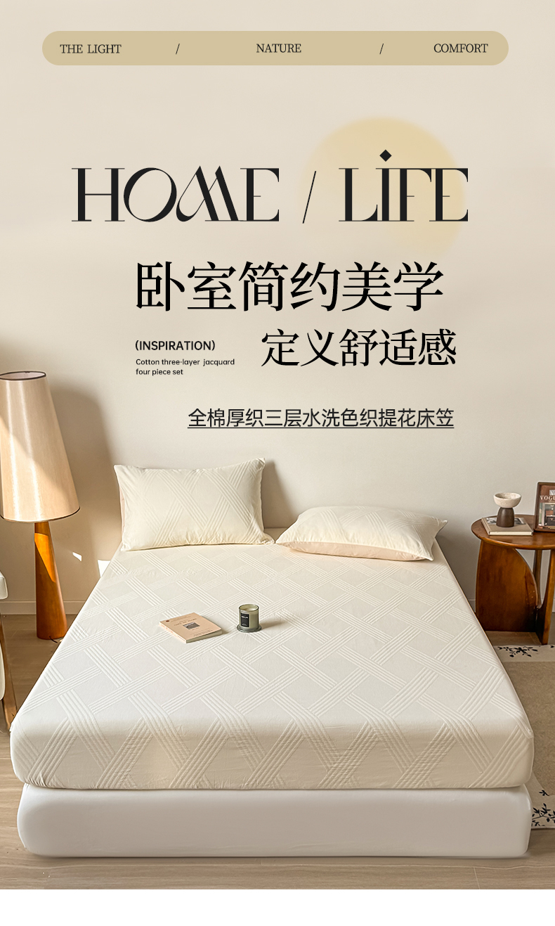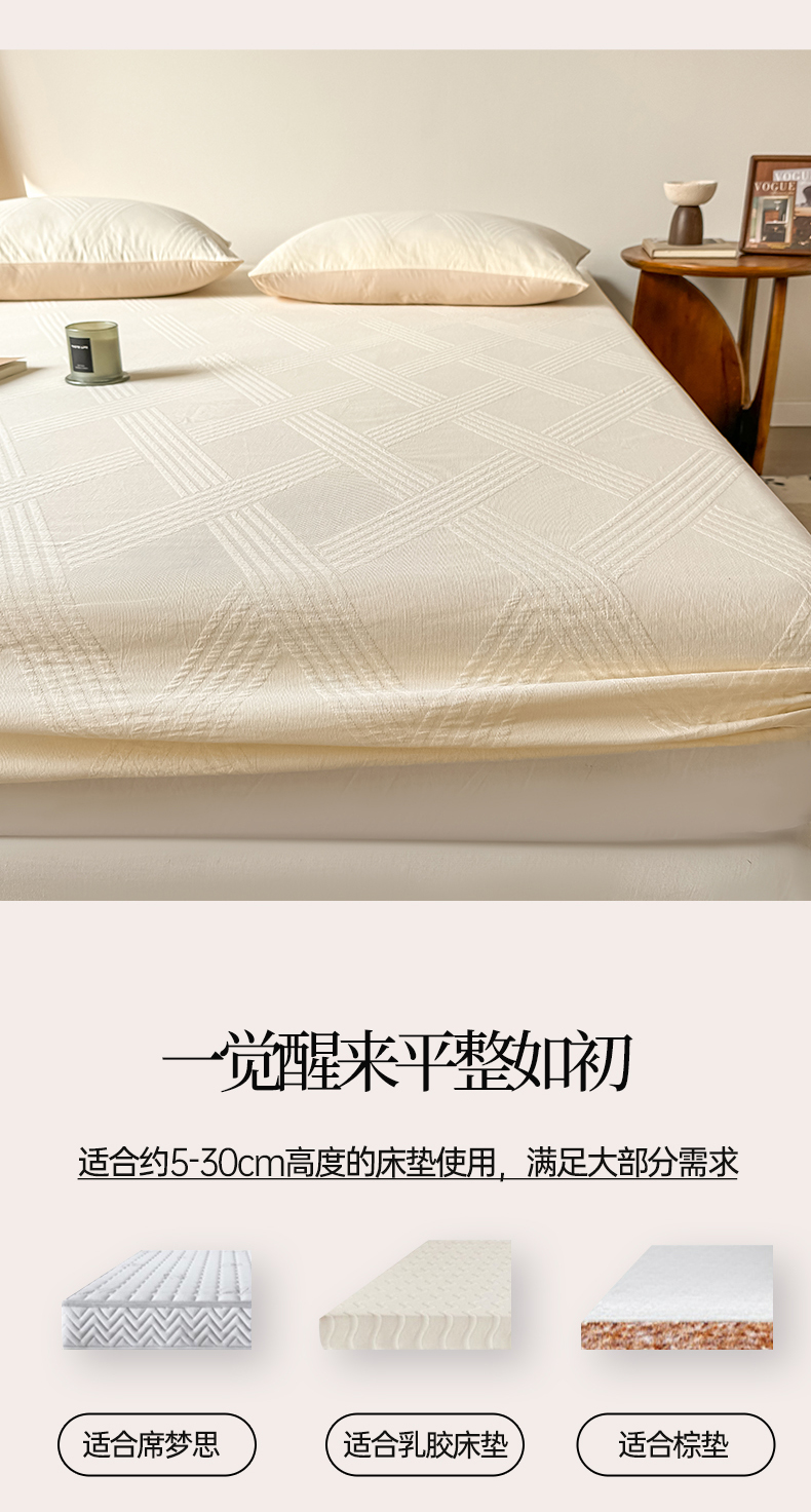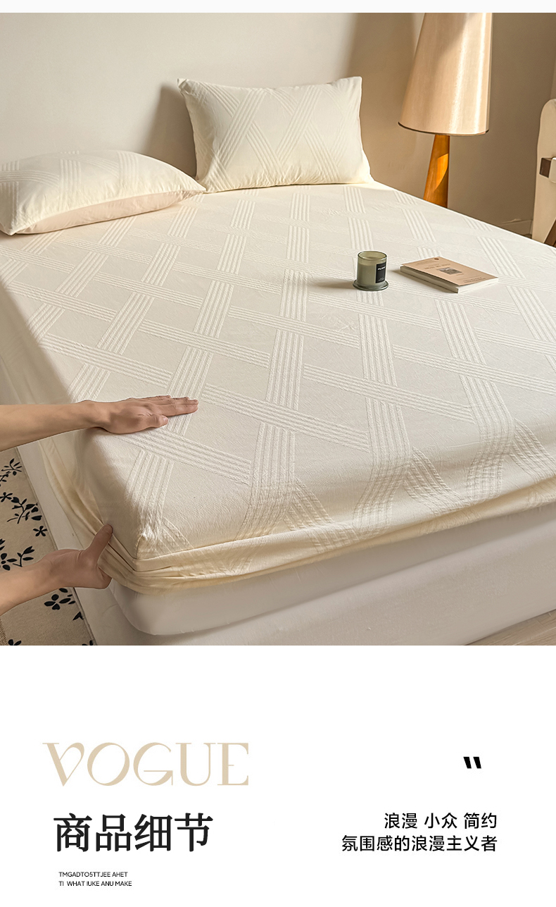 商品名称:女子家纺 2026新款全棉厚织三层水洗色织提花床笠 维希-杏仁奶霜
