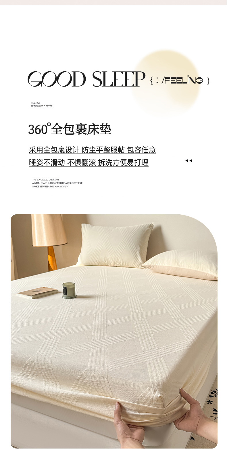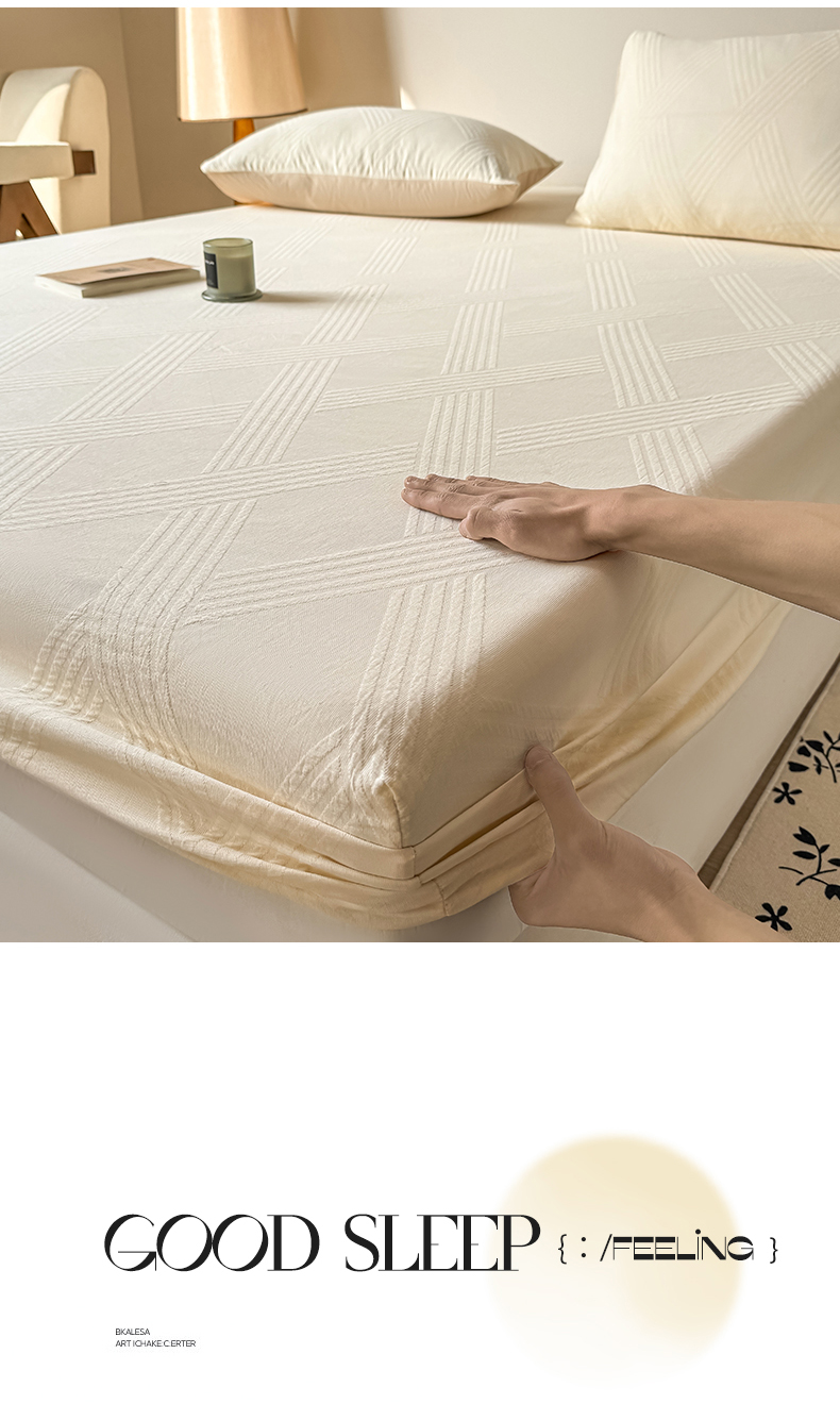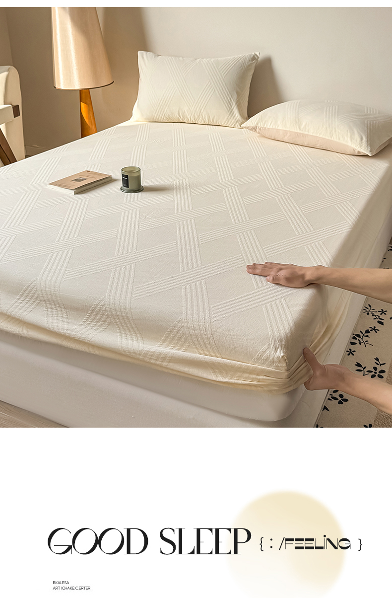 商品名称:女子家纺 2026新款全棉厚织三层水洗色织提花床笠 维希-杏仁奶霜
