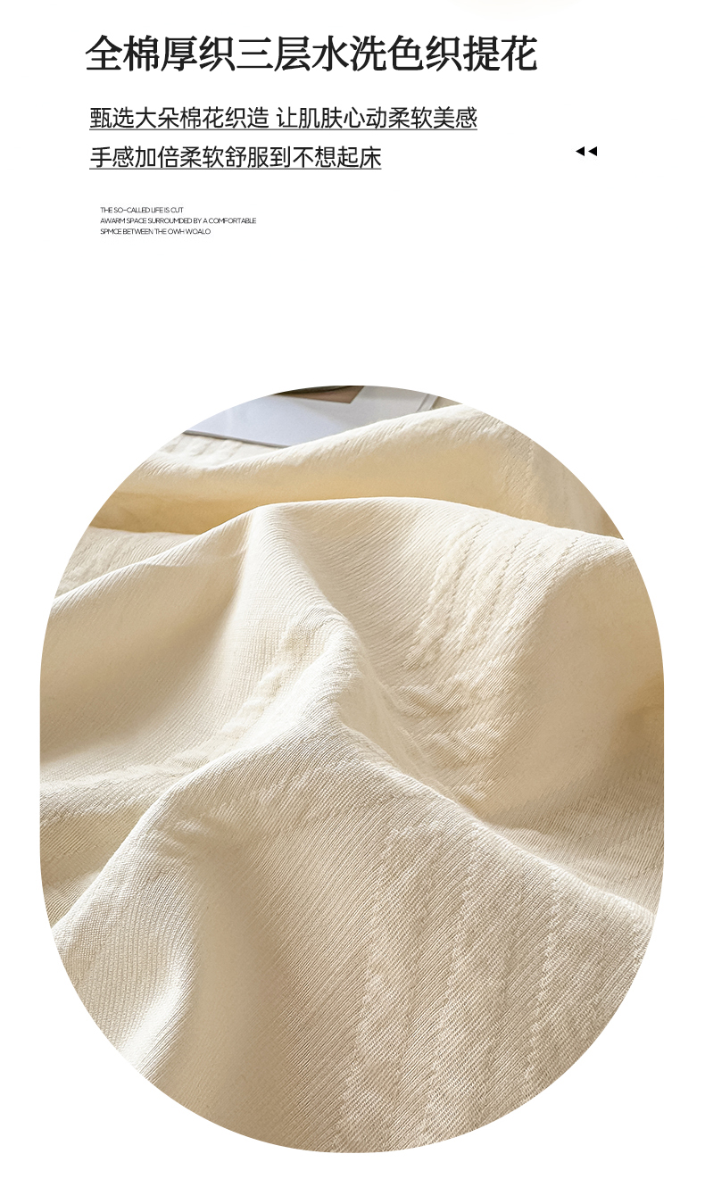 女子家纺 2026新款全棉厚织三层水洗色织提花床笠 维希-杏仁奶霜