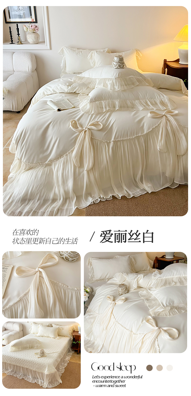 (总)吾欢心 2025新款公主风雪纺边四季通用夹棉床盖,床盖白,床盖粉,床盖黄,床盖咖,床盖绿,床盖抹茶绿,床盖紫