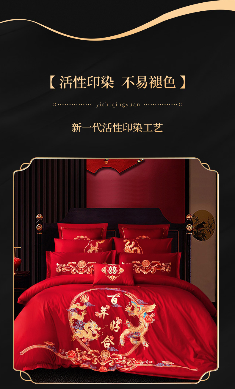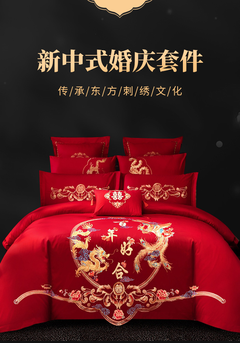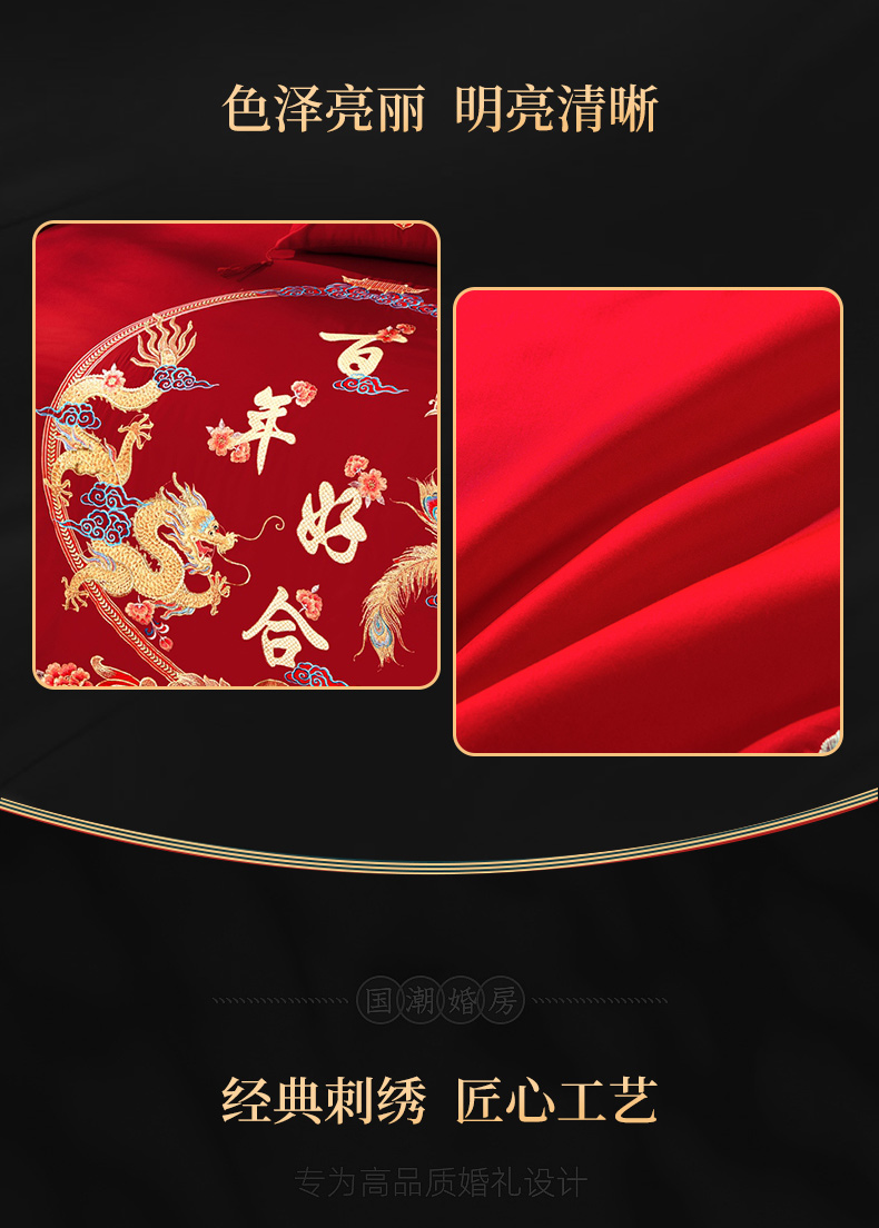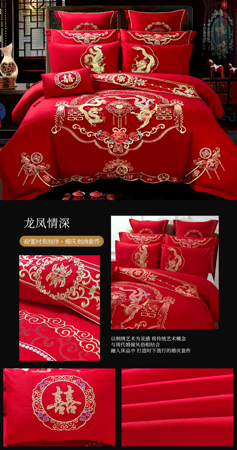 当前位置: 91家纺网 > 商品网购 > 床品套件 > 四件套 > 婚庆四件套 > 慕她家纺 慕她畅销款全棉纯棉婚庆四件套大红色刺绣结婚床上用品 龙凤百年