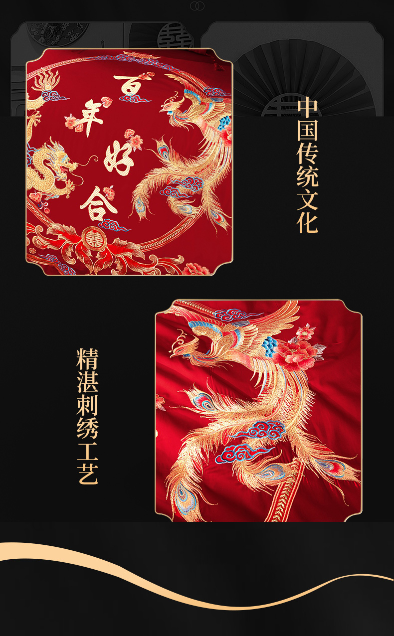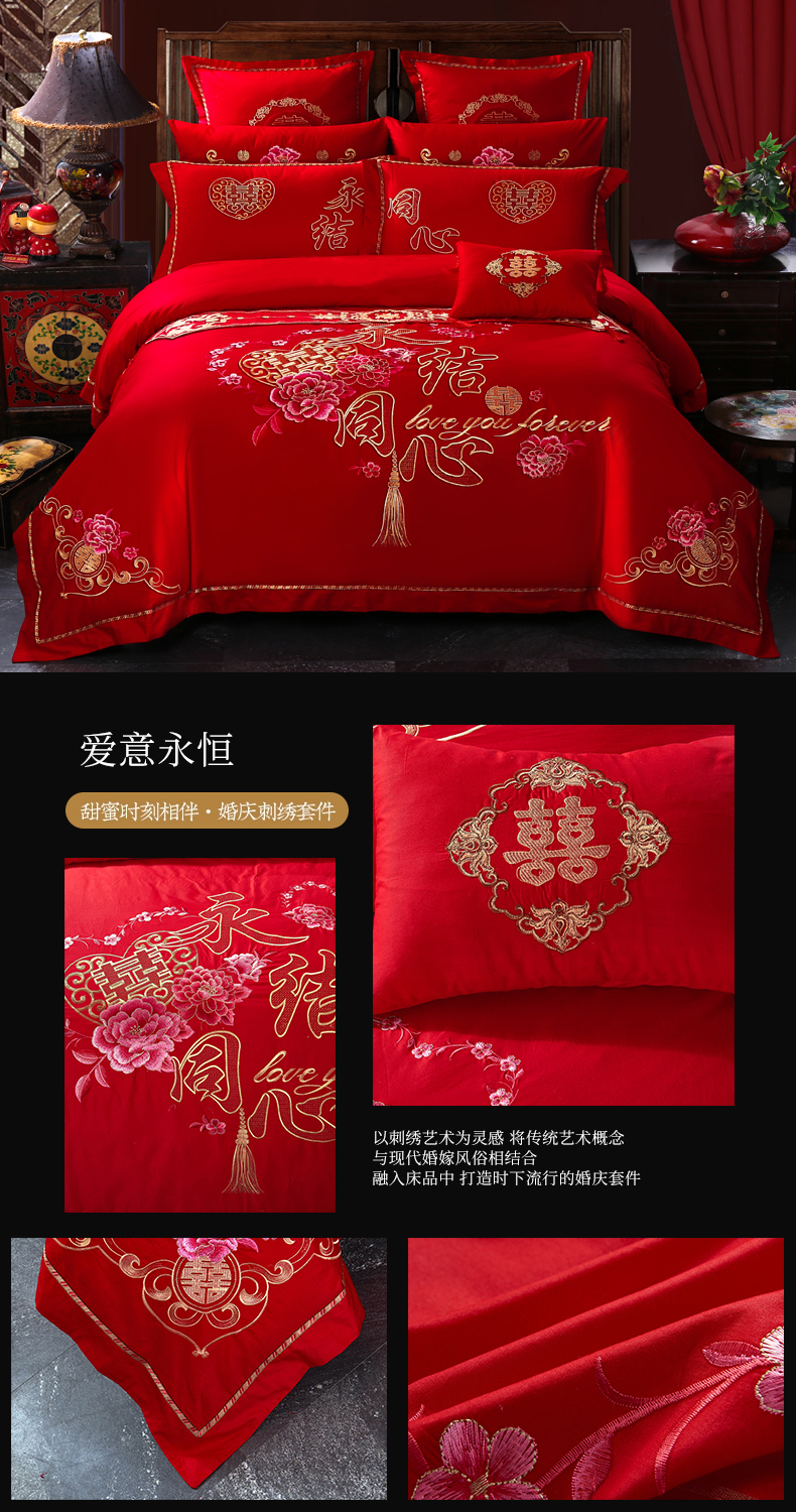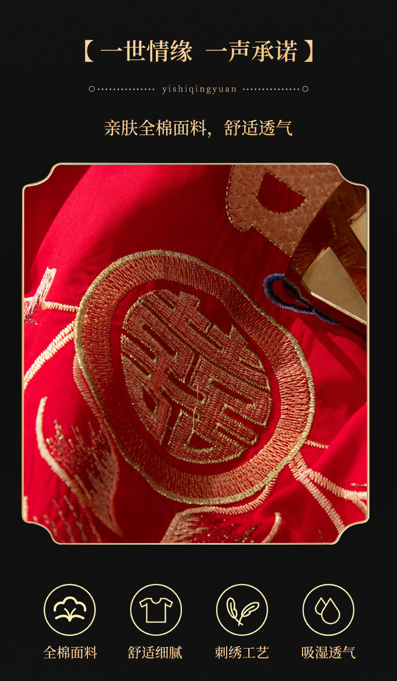 当前位置: 91家纺网 > 商品网购 > 床品套件 > 四件套 > 婚庆四件套 > 慕她家纺 慕她畅销款全棉纯棉婚庆四件套大红色刺绣结婚床上用品 龙凤百年