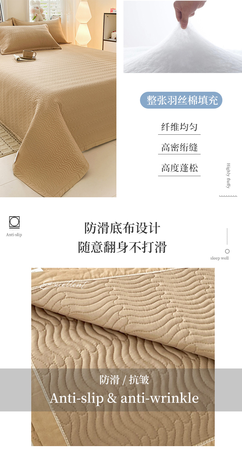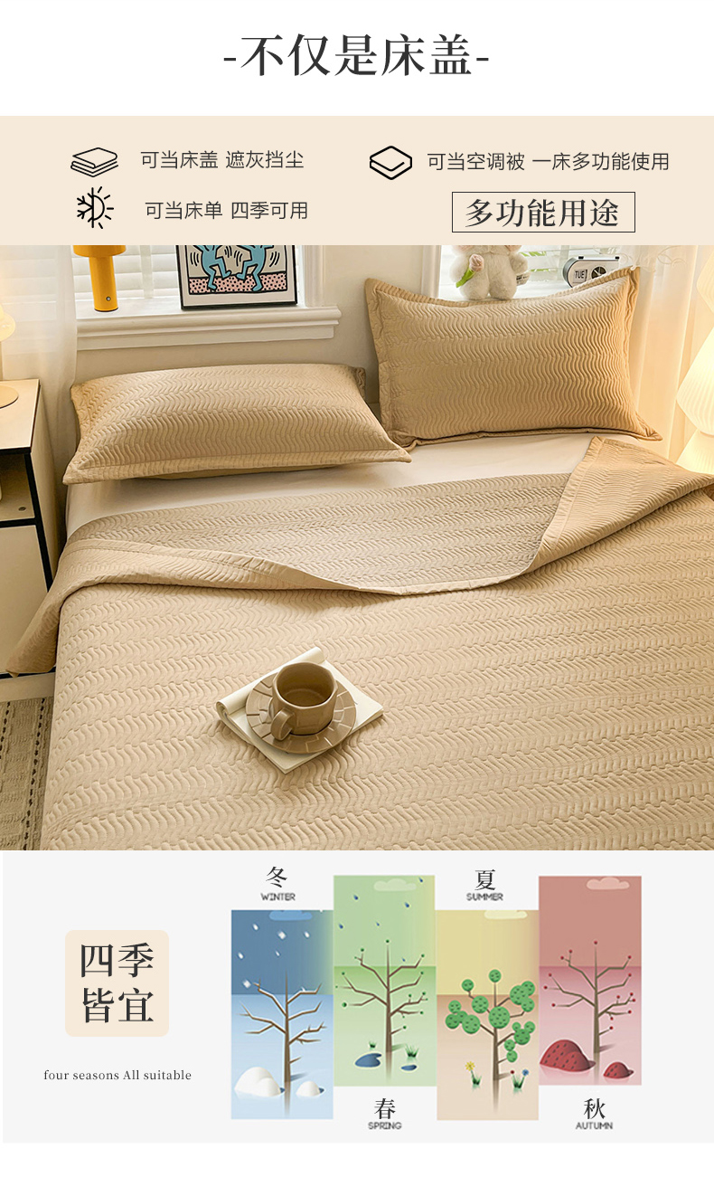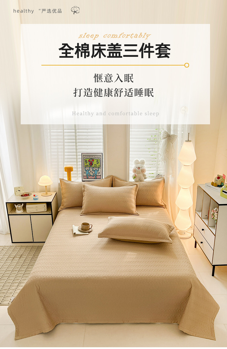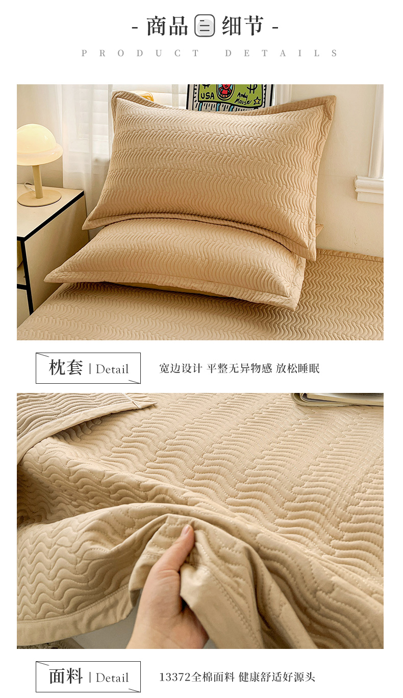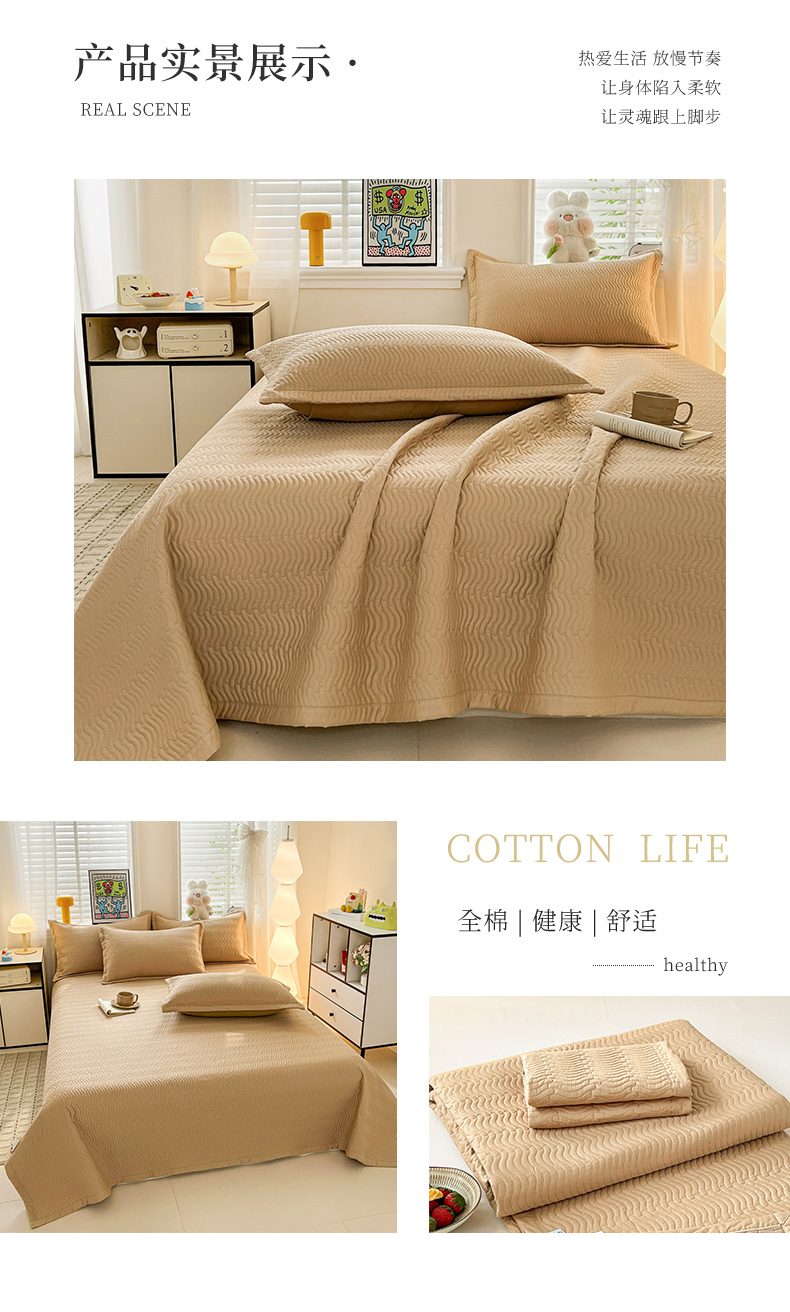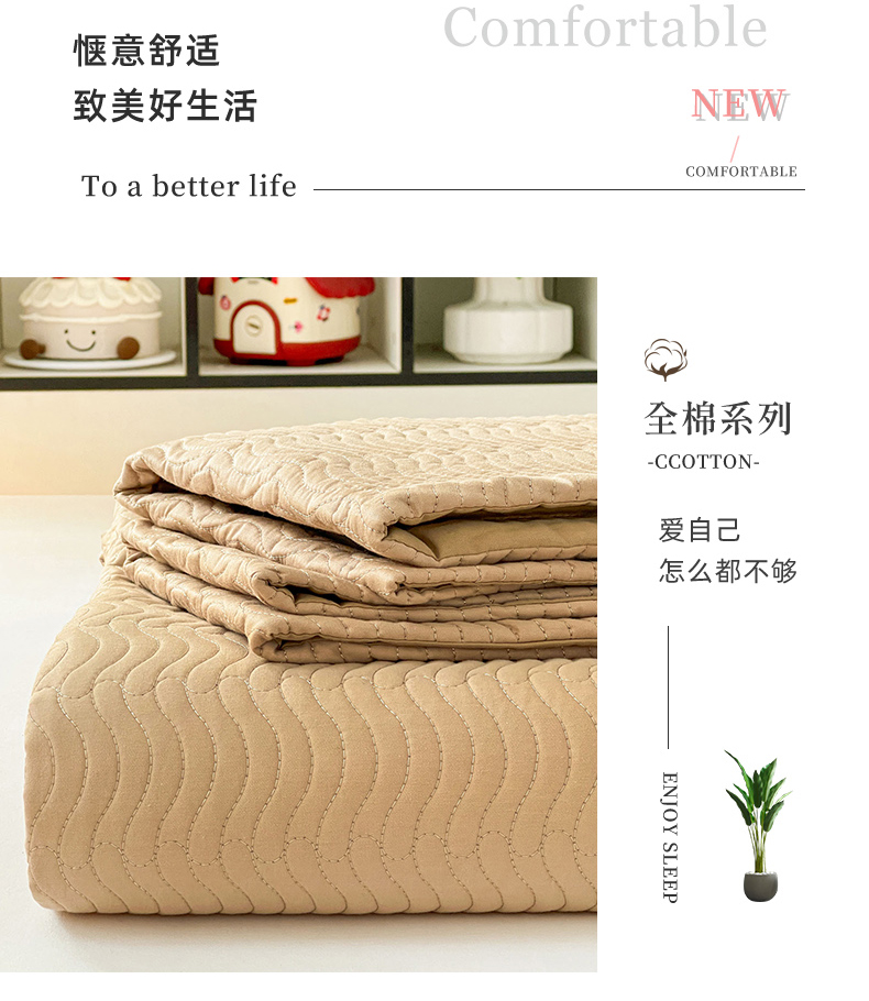 • 91家纺网 家纺一手货源 找家纺 梦精灵家纺 2026新款纯色全棉床盖单件纯棉绗缝夹棉床单 四季通用榻榻米防滑学生宿舍单人床盖枕套 素境-咖