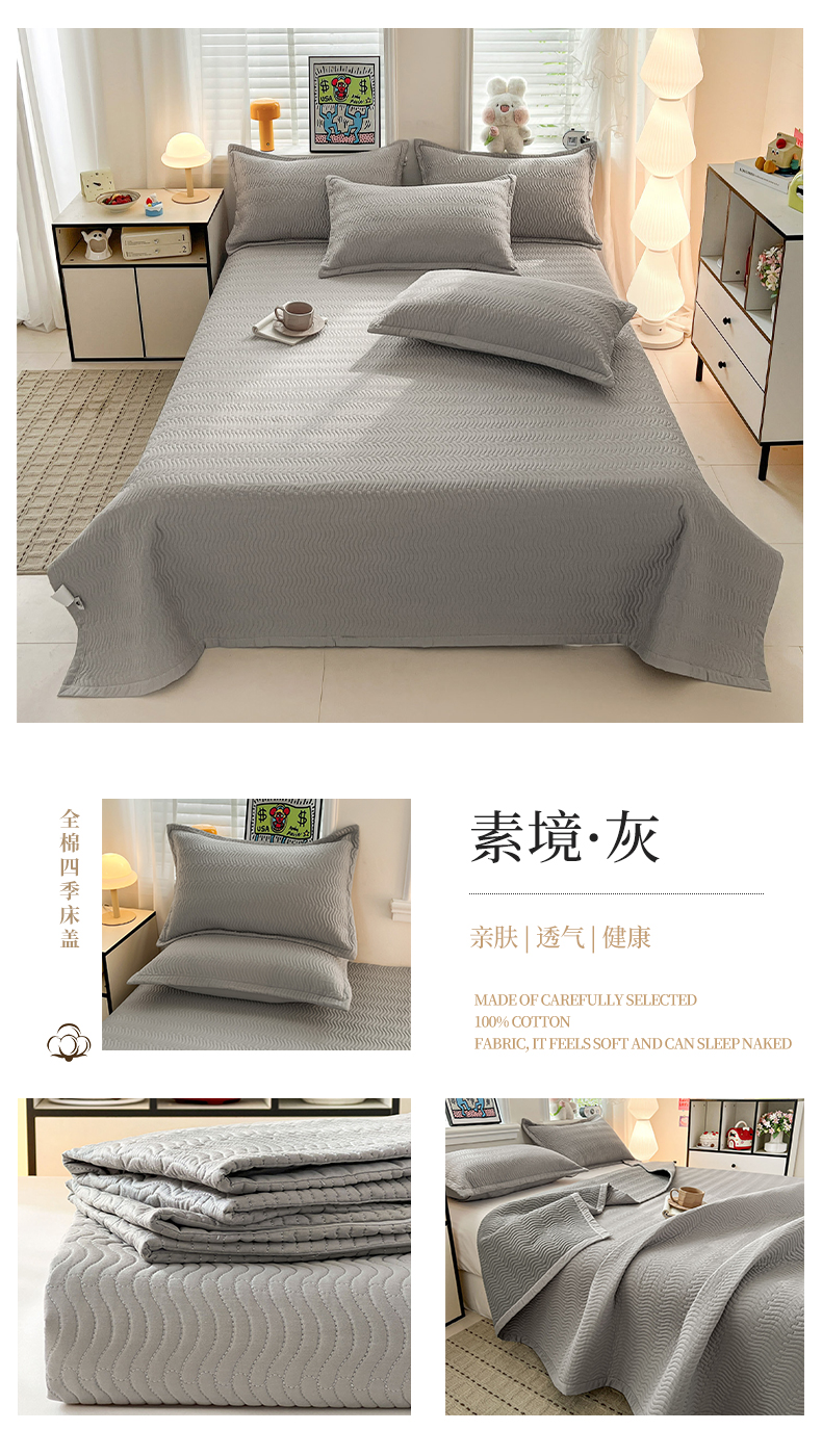 (总)梦精灵家纺 2026新款纯色全棉床盖单件纯棉绗缝夹棉床单 四季通用榻榻米防滑学生宿舍单人床盖枕套,素境-粉,素境-蓝,素境-绿,素境-紫,素境-灰,素境-咖