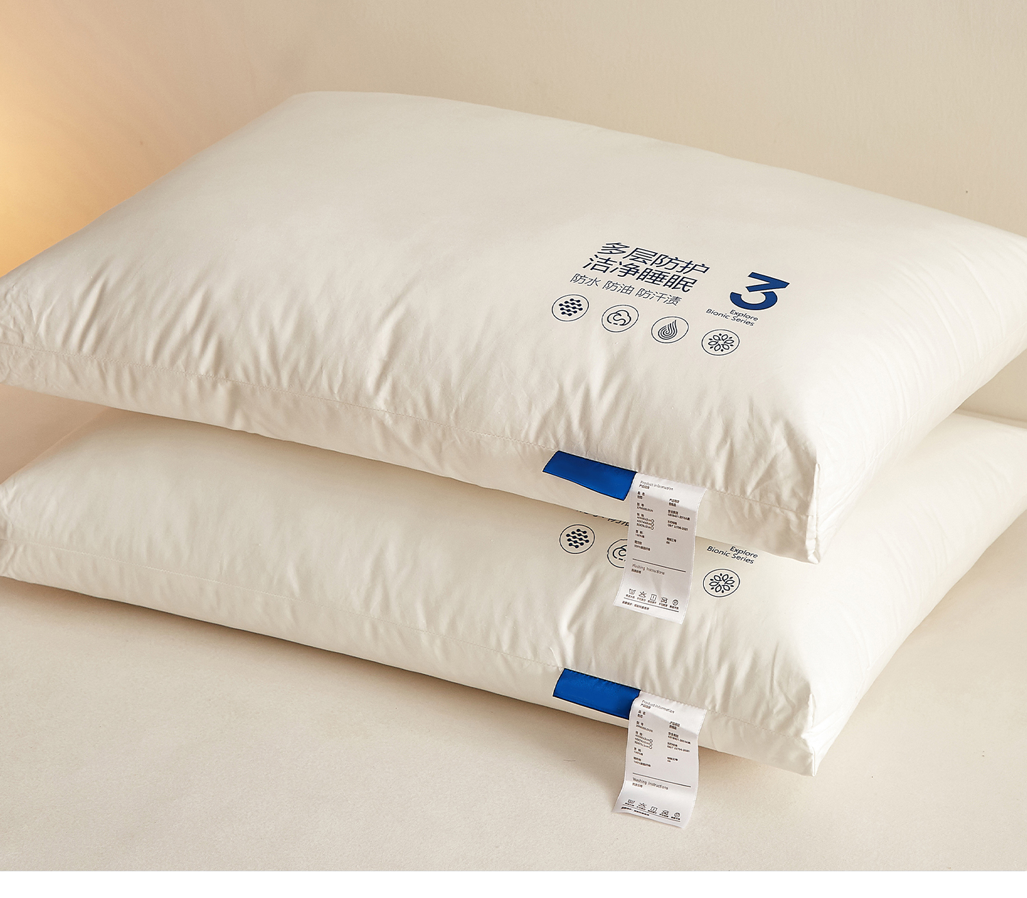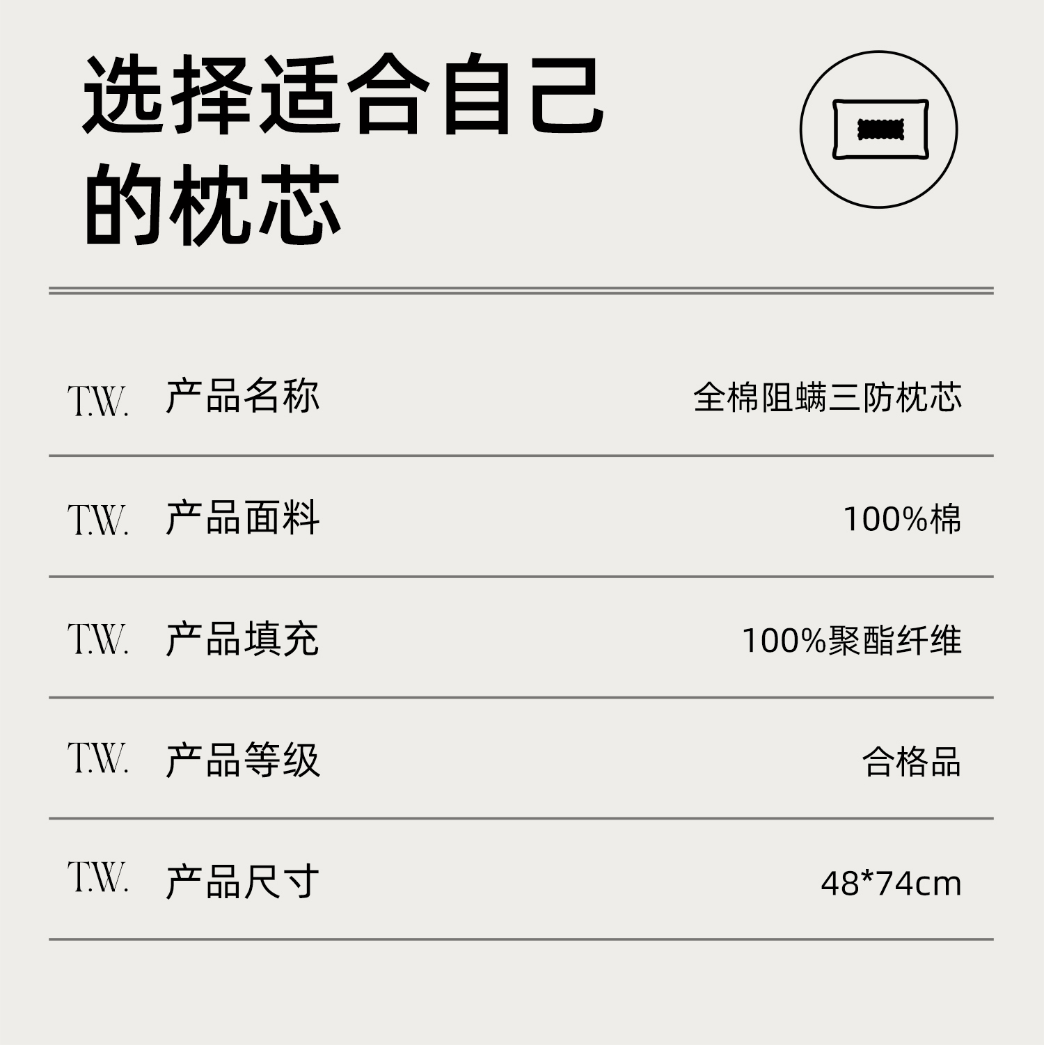 商品名称:小桃姐家纺 2026新款全棉纯棉三防枕枕头枕芯 全棉三防枕-低枕【一对装】