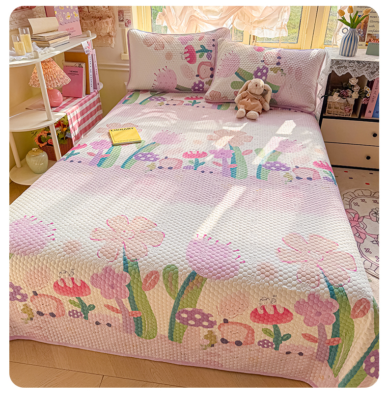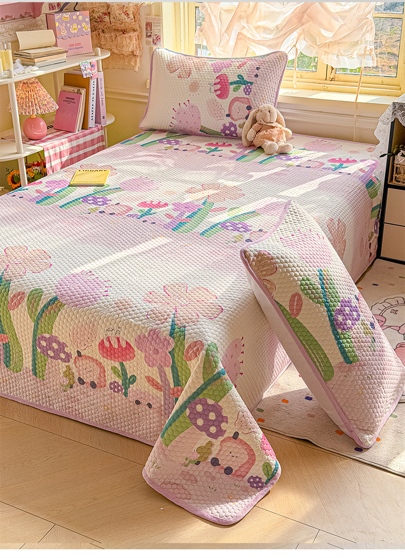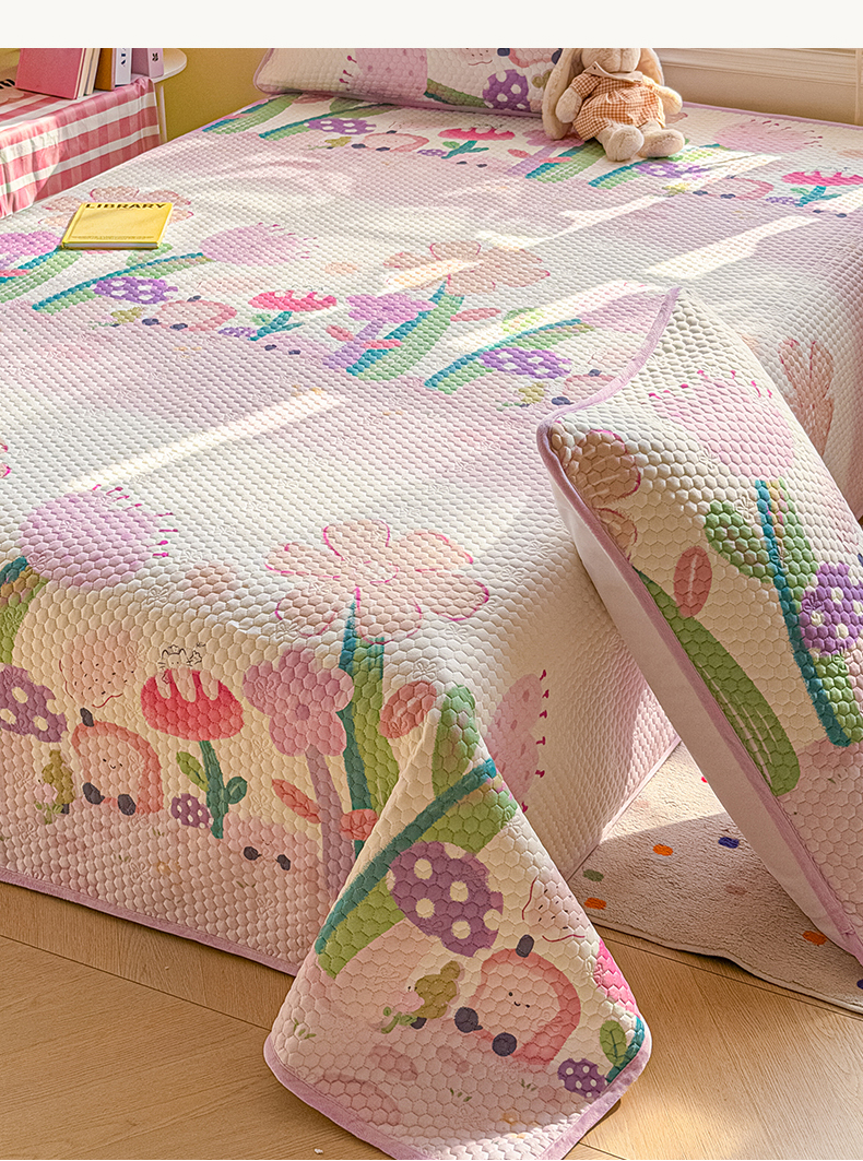 丫丫家纺 2026新款金豆豆床盖A类针织棉印花大版卡通床盖三四件套 花仙子