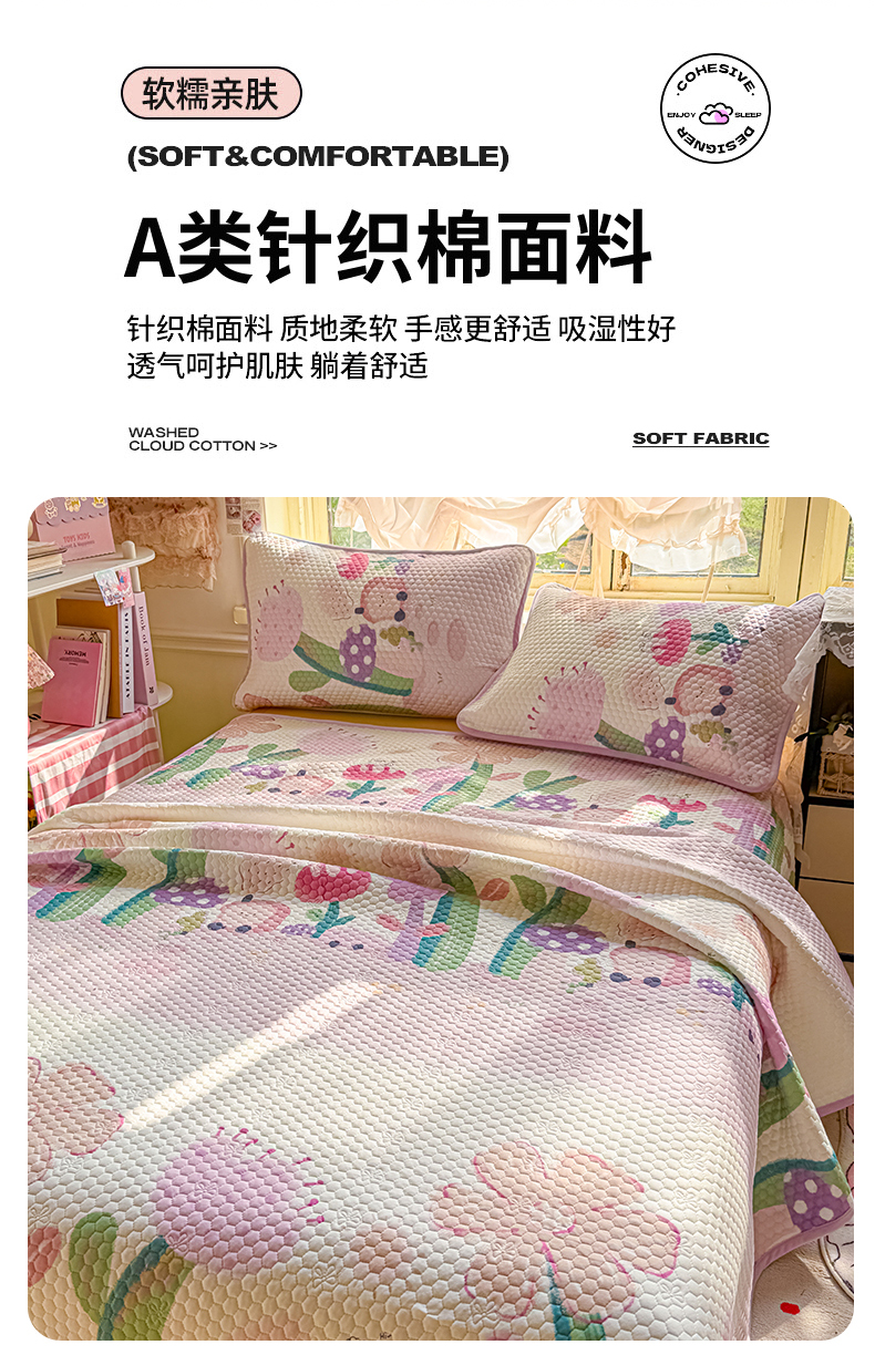 商品名称:丫丫家纺 2026新款金豆豆床盖A类针织棉印花大版卡通床盖三四件套 花仙子