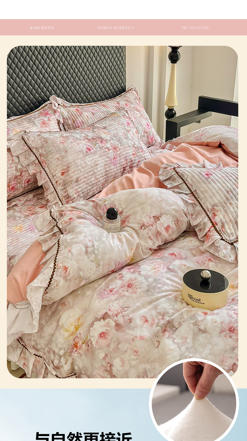 (总)胜权家纺 2024新款小香风牛奶绒夹棉床盖四件套-芭莎系列,芭莎-粉,芭莎-绿,芭莎-紫,芭莎-米