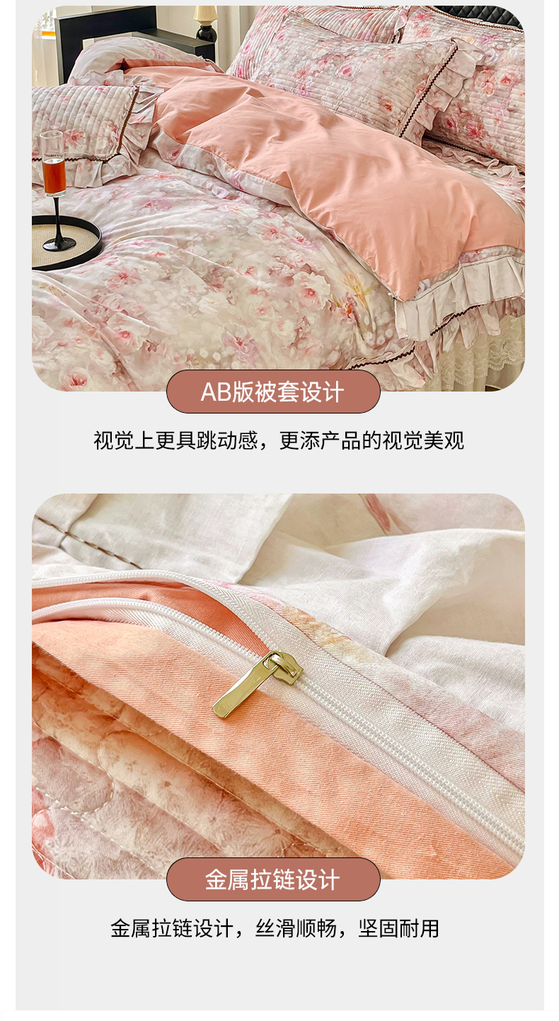 (总)胜权家纺 2025新款全棉13372法式床裙款活性印花四件套,莫妮卡-湖绿,莫妮卡-酒红