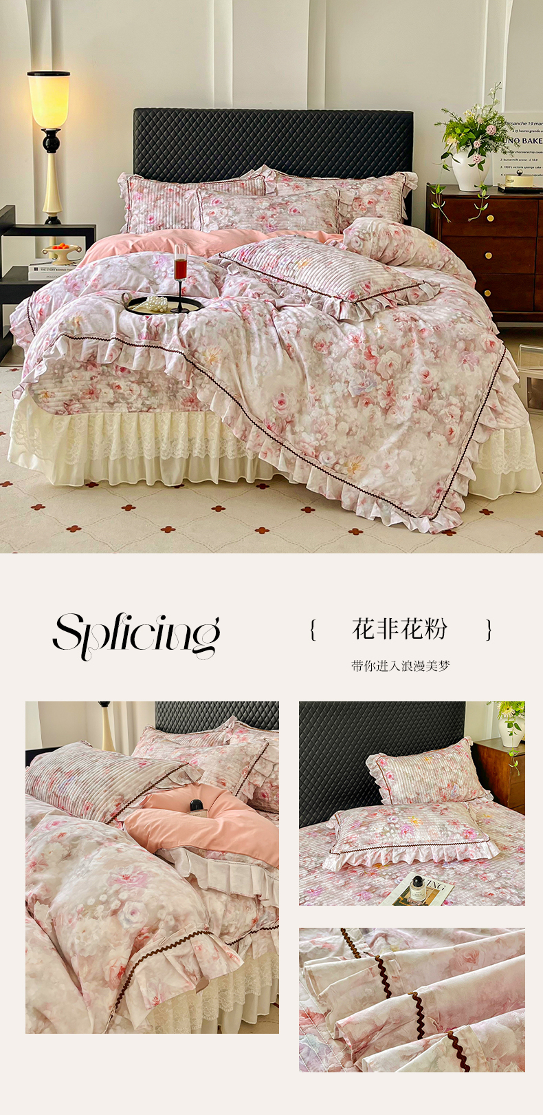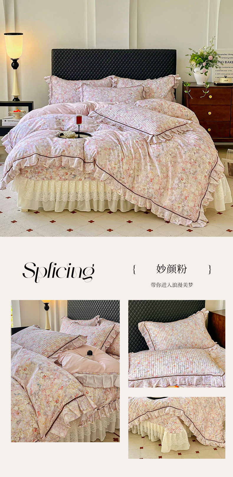(总)胜权家纺 2026新款A类全棉法式13372数码印花夹棉床盖单品系列,花非花粉,花非花绿,花海绿,锦绣繁华粉,锦绣繁华绿,妙颜粉