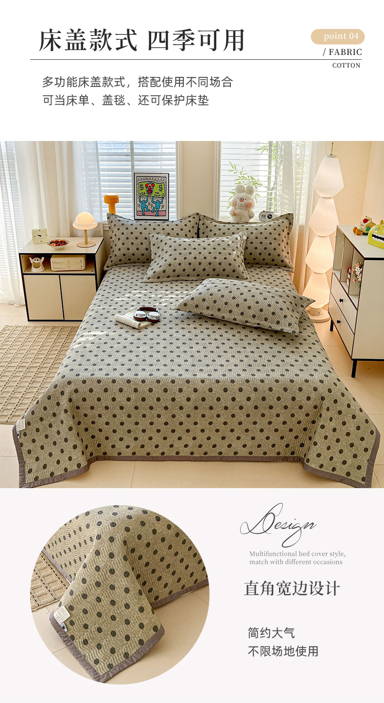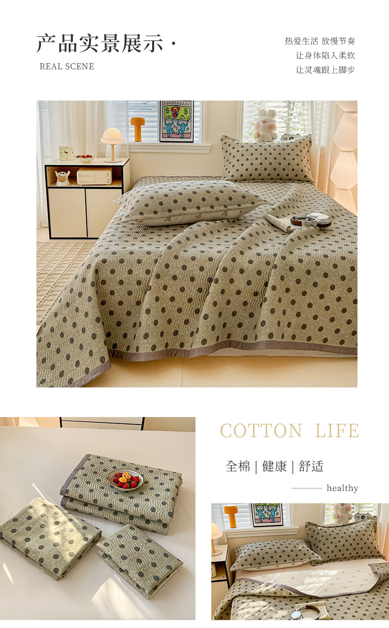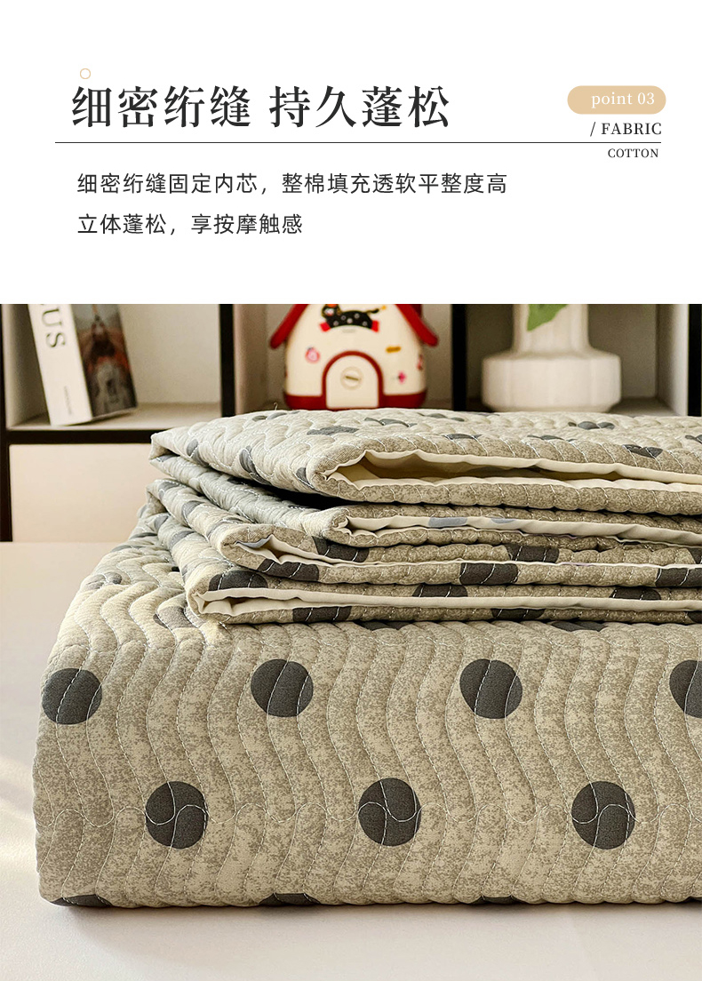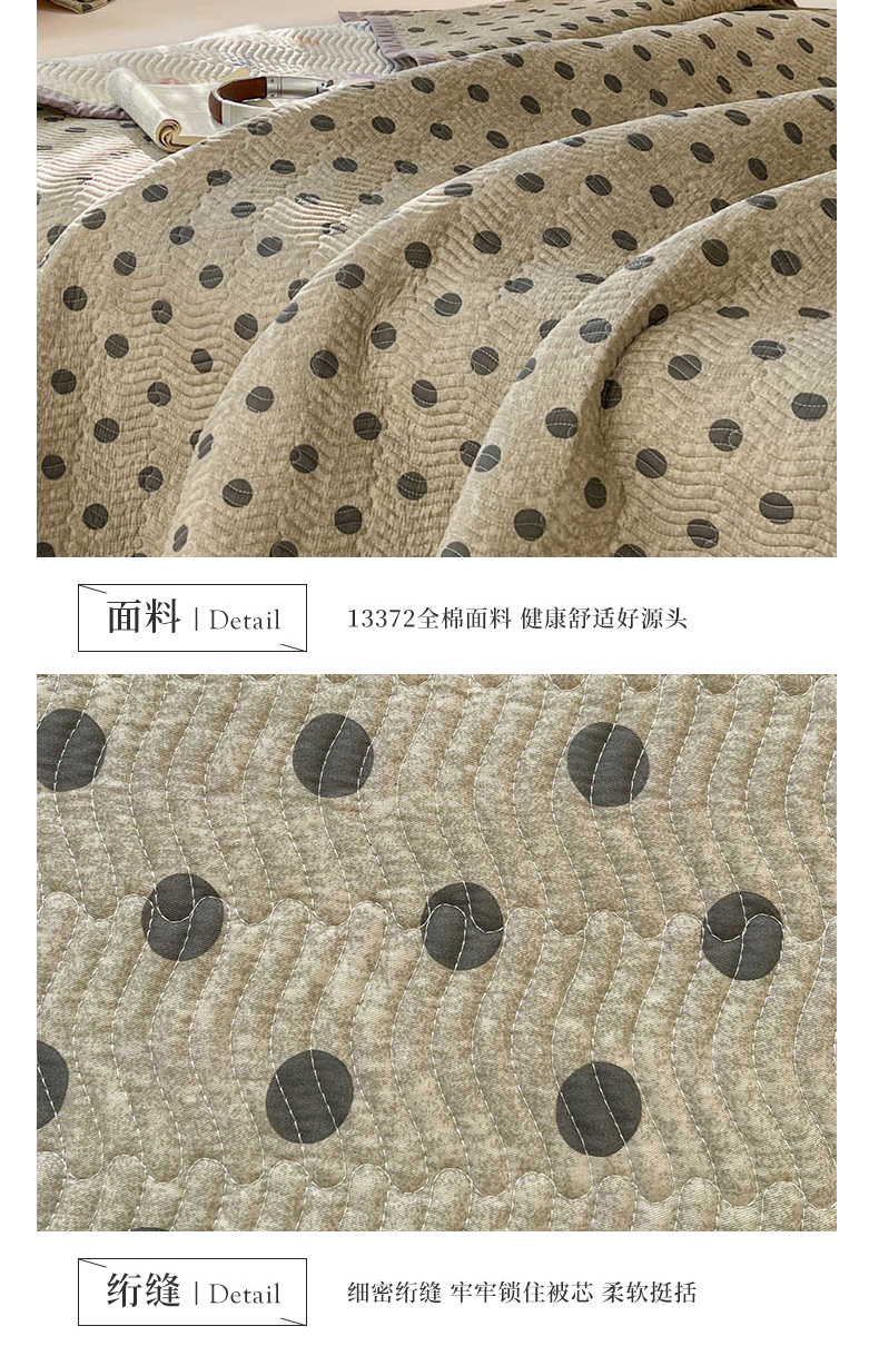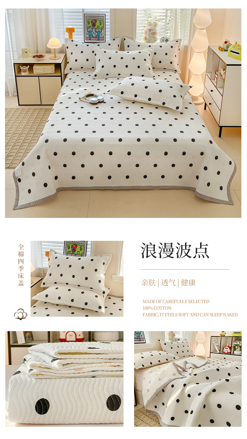 • 91家纺网 家纺一手货源 找家纺 梦精灵家纺 2026新款纯棉床盖单件全棉绗缝夹棉床单 四季通用榻榻米防滑学生宿舍单人被套枕套 灰调波点