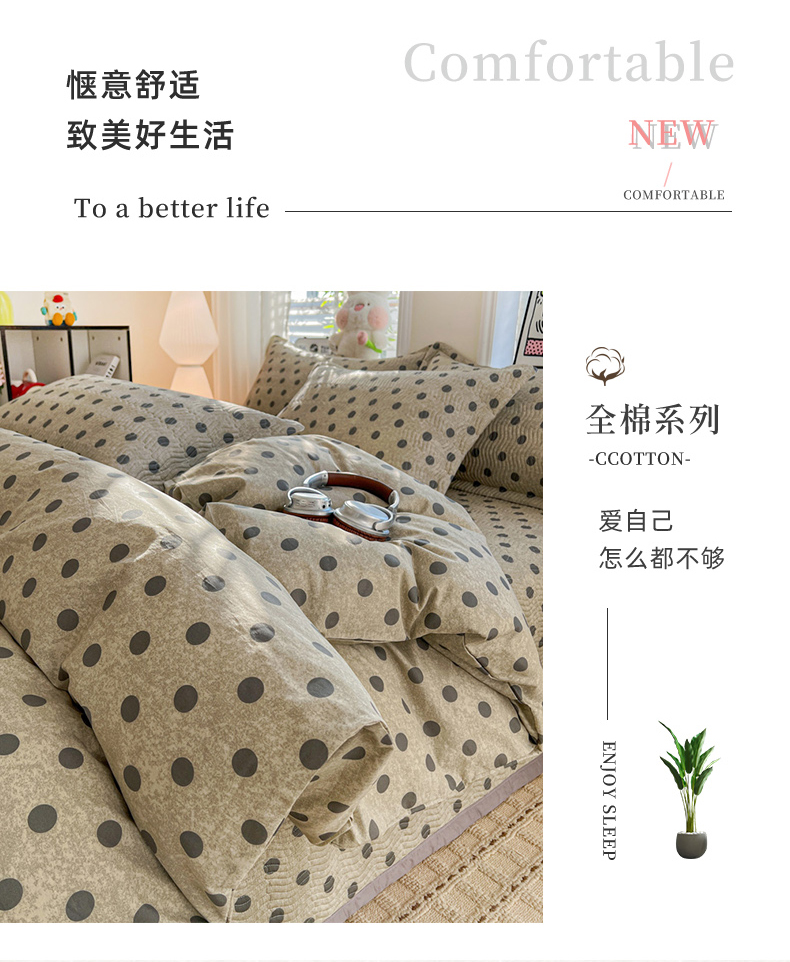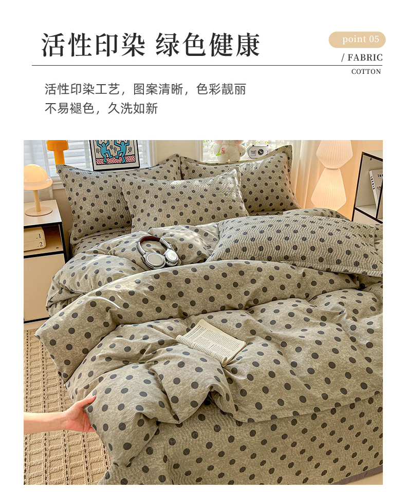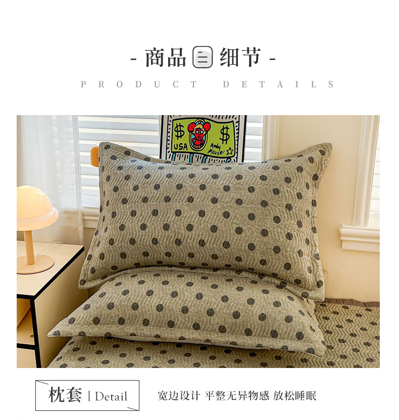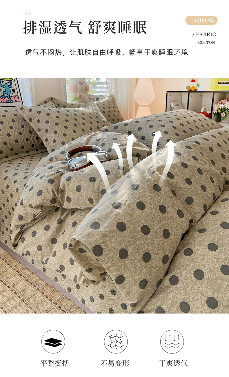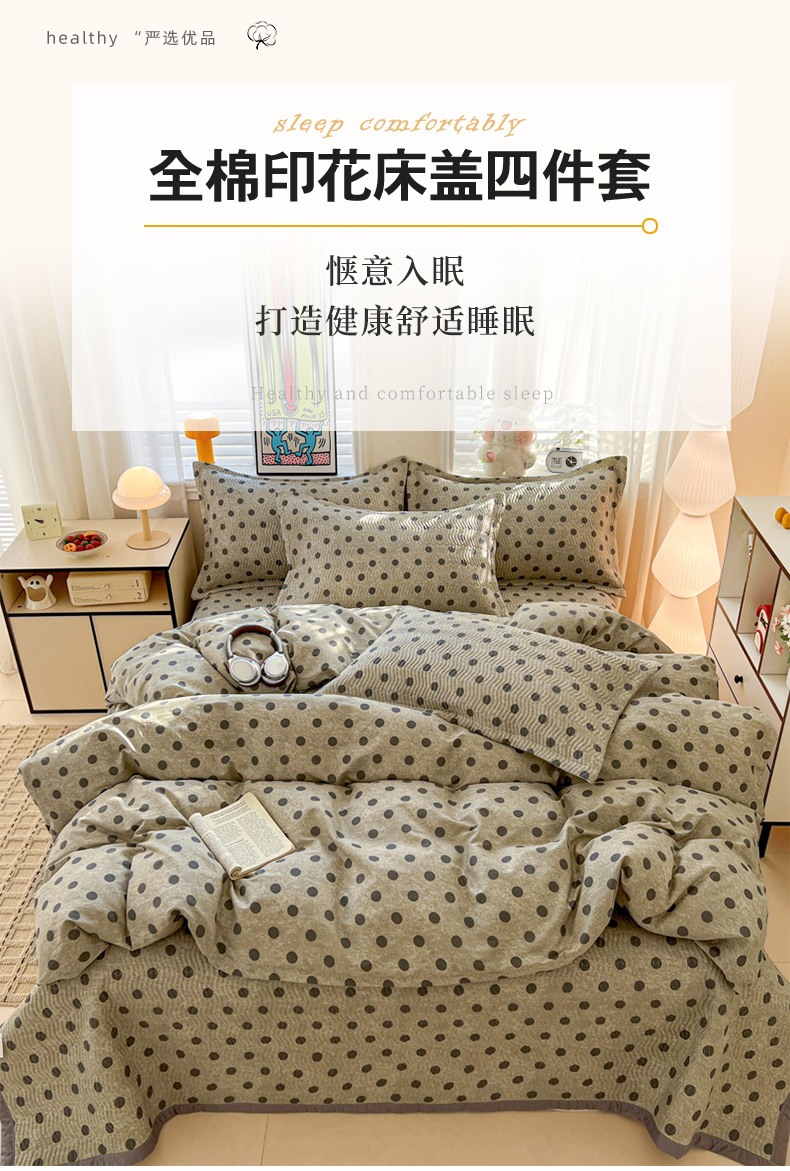 • 91家纺网 家纺一手货源 找家纺 梦精灵家纺 2026新款纯棉床盖单件全棉绗缝夹棉床单 四季通用榻榻米防滑学生宿舍单人被套枕套 灰调波点