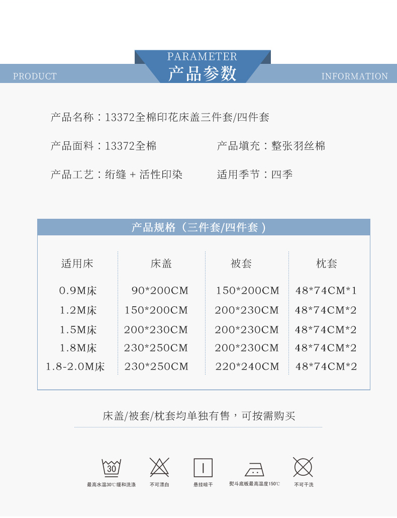 150x230cm单床盖+枕套一对
