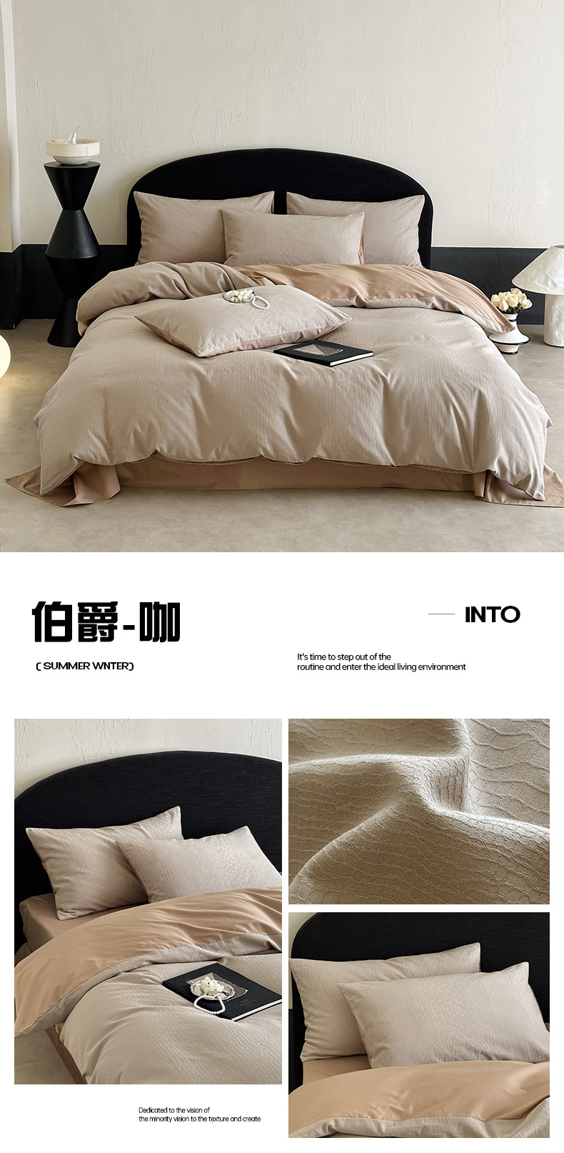当前位置: 91家纺网 > 商品网购 > 床品套件 > 四件套 > 其它四件套 > 静家居-简约原创家纺 2026新款60s贡缎提花系列四件套-伯爵 伯爵-咖