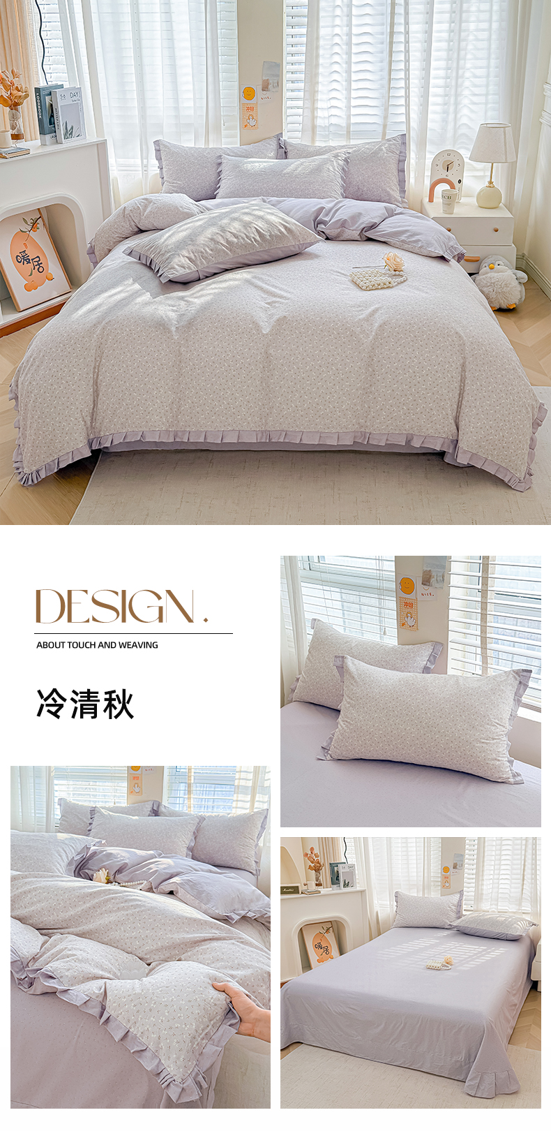 帛美家纺 2026新款全棉花边款印花四件套 冷清秋