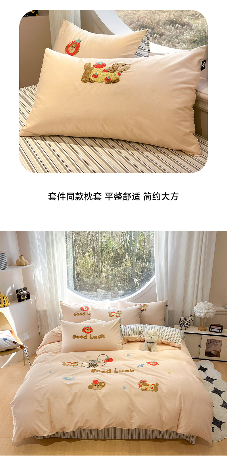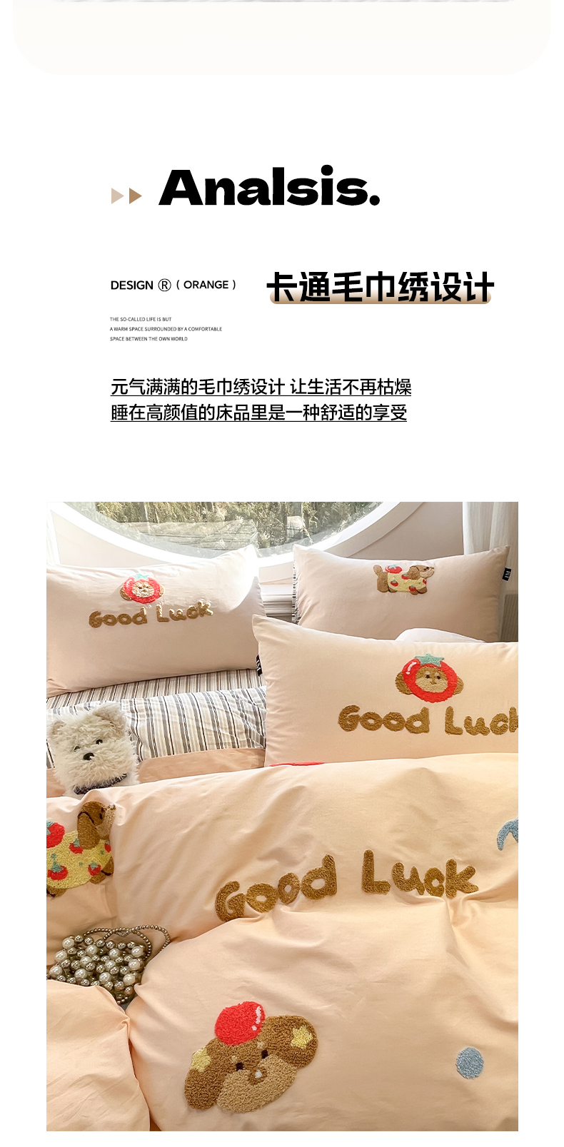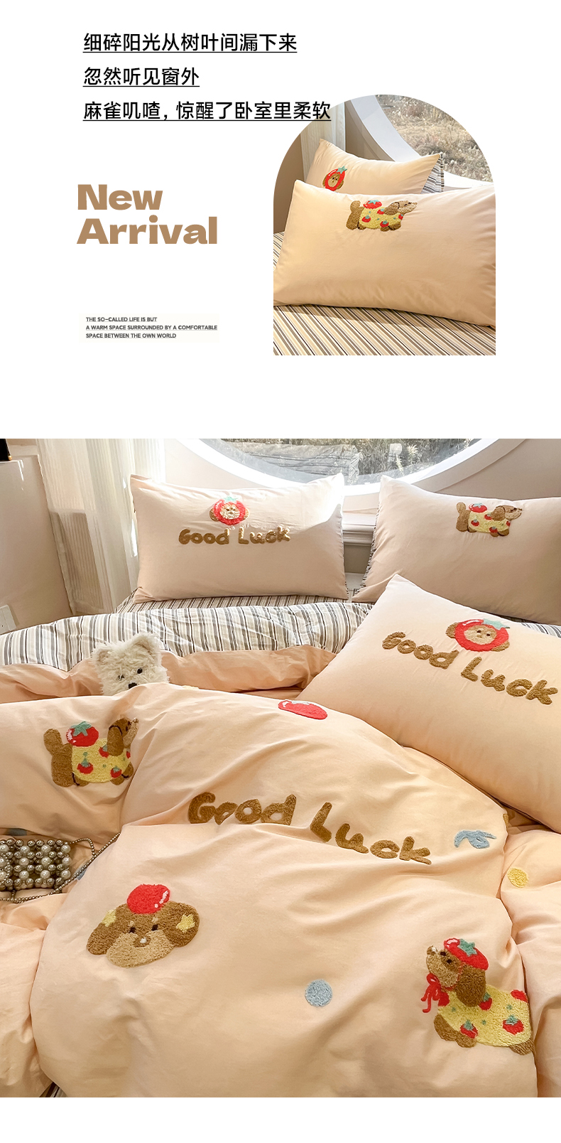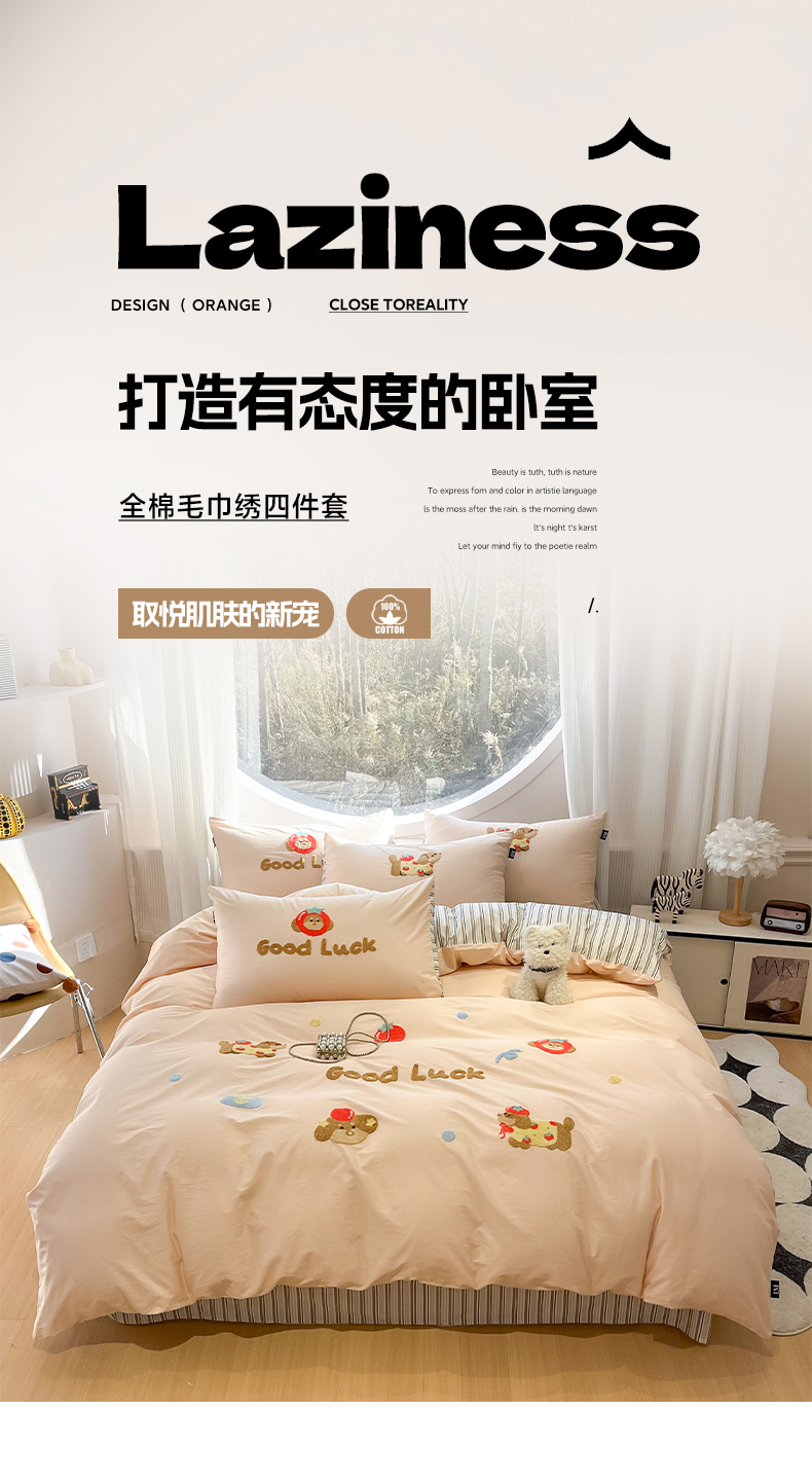 (总)乐美家纺 2026新款春夏软萌全棉毛巾绣系列四件套,冬日小熊,房子小狗狗,西高地房子,西红柿腊肠狗