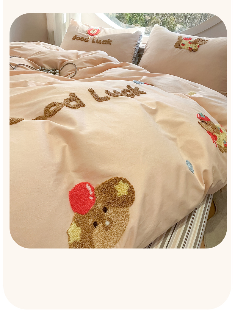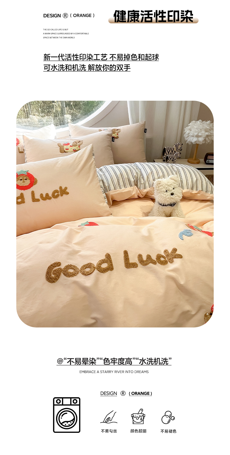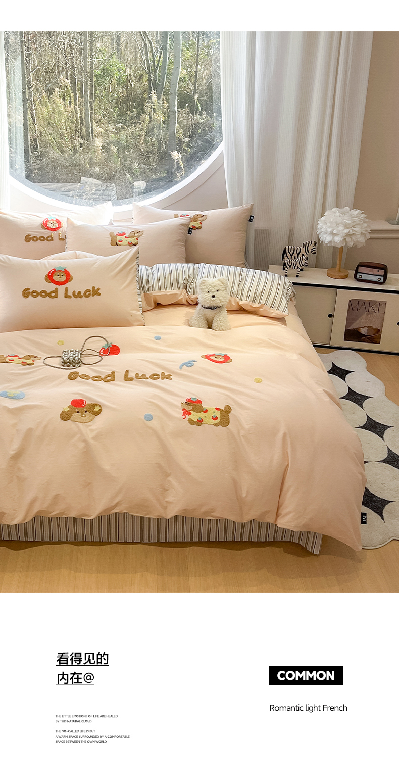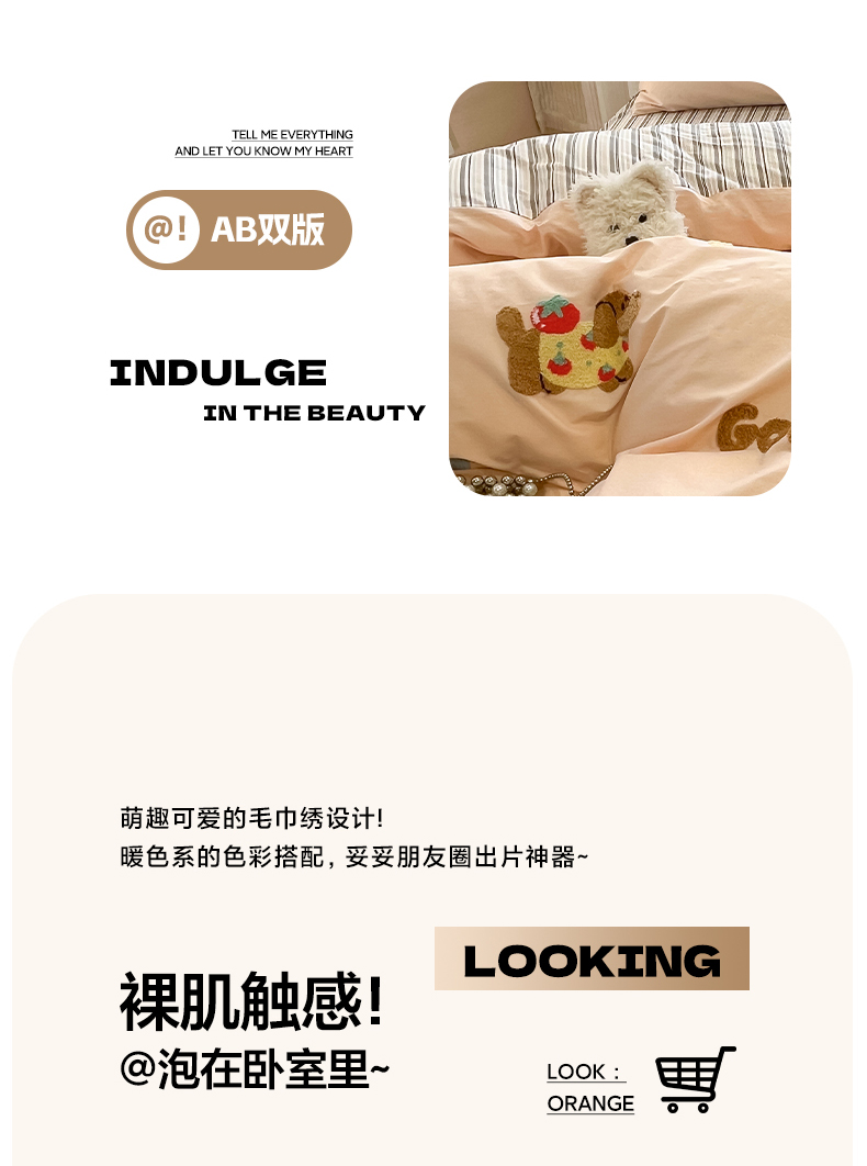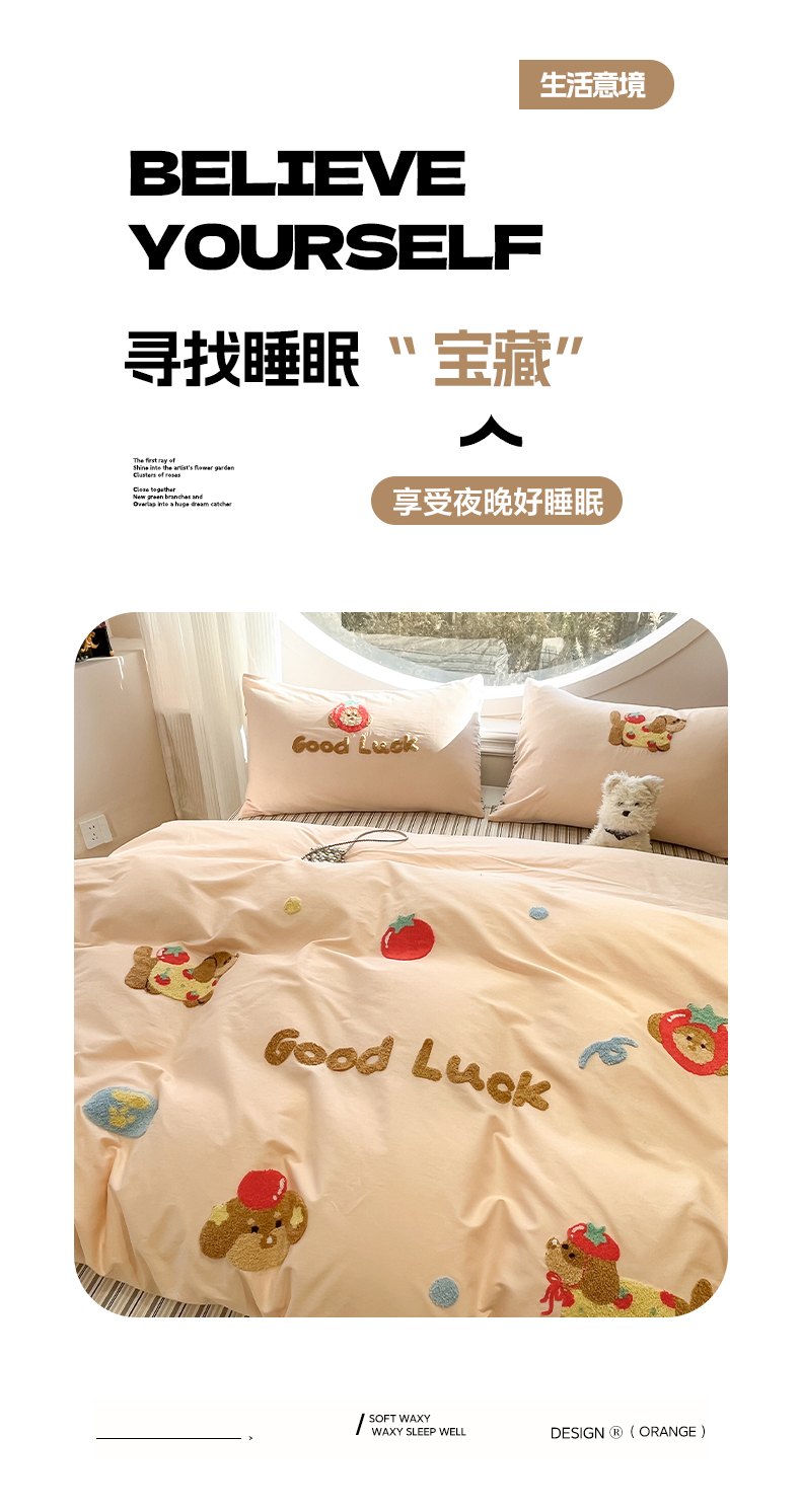 (总)乐美家纺 2026新款春夏软萌全棉毛巾绣系列四件套,冬日小熊,房子小狗狗,西高地房子,西红柿腊肠狗