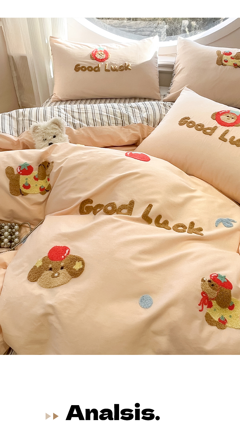 商品名称:乐美家纺 2026新款春夏软萌全棉毛巾绣系列四件套 西红柿腊肠狗