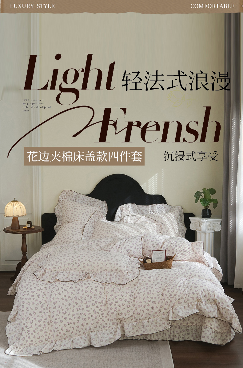 当前位置: 91家纺网 > 商品网购 > 床上用品 > 床盖 > 庭笙 2026新款法式复古花边夹棉床盖床盖四件套 组合图