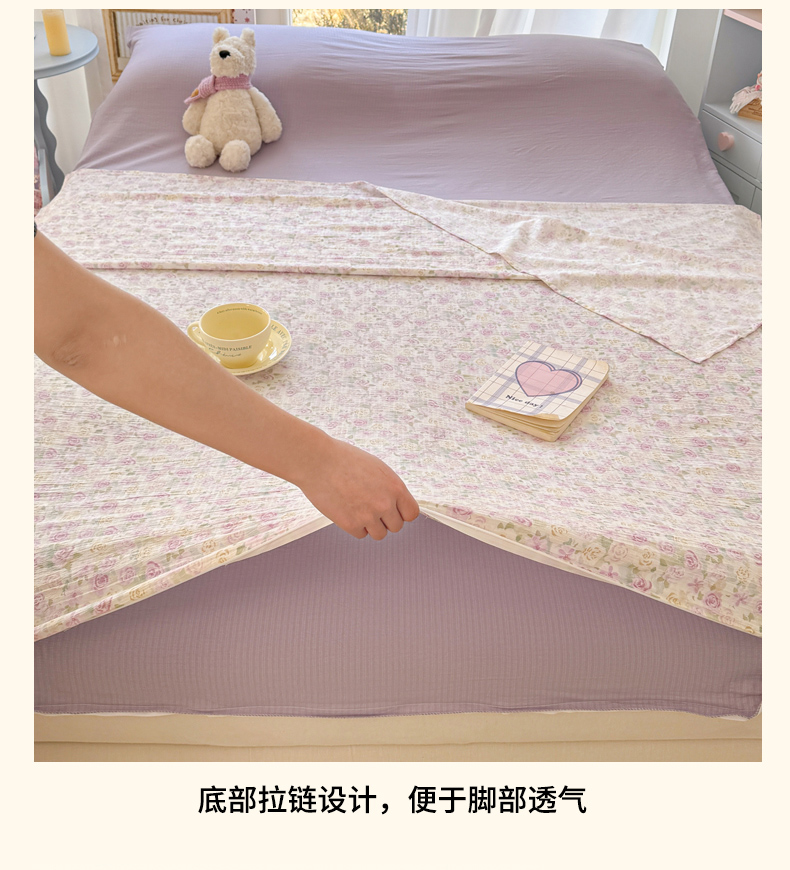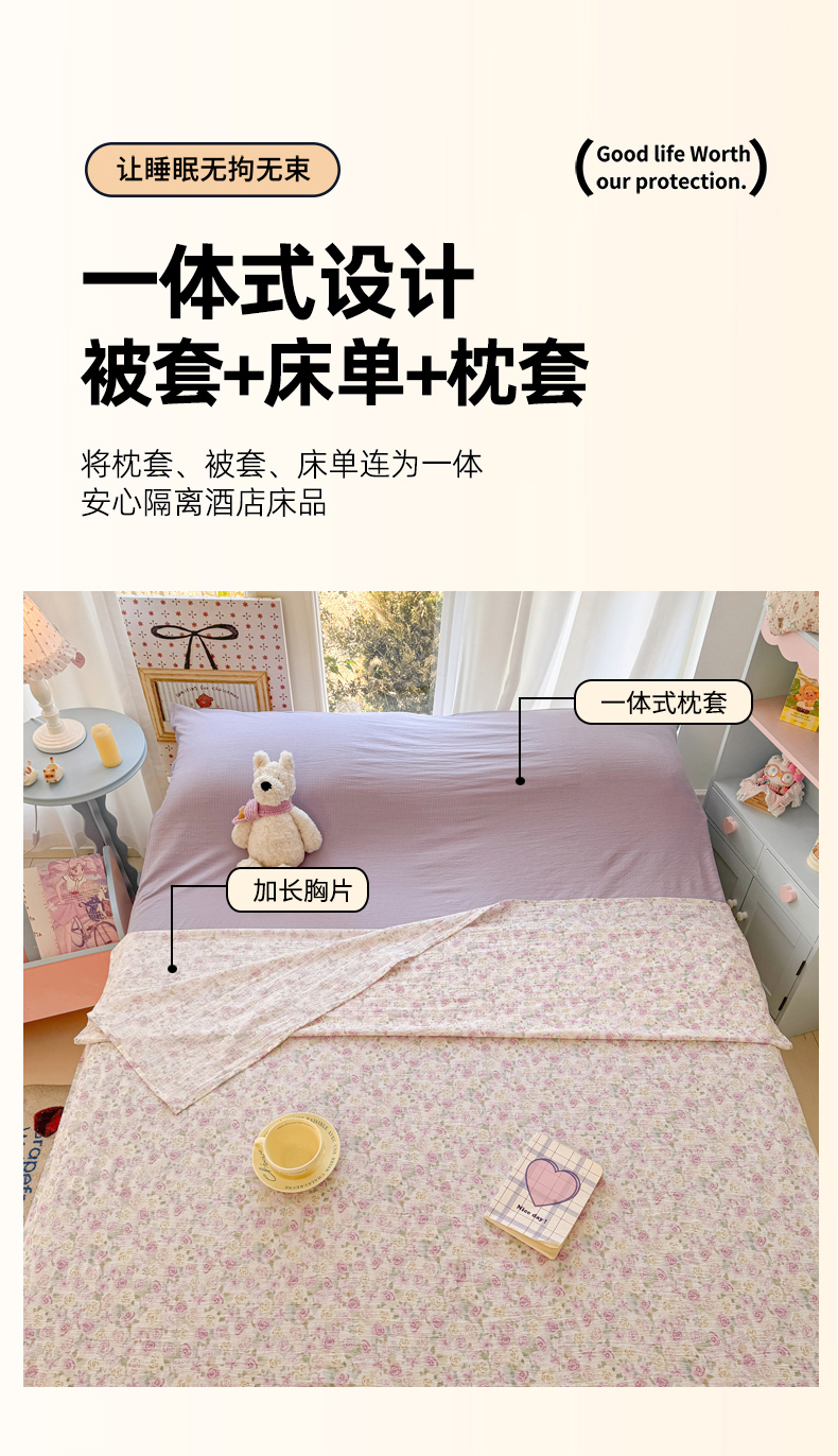 商品名称:Sweet dreams甜梦 2026新款A类皱皱双层纱小清新酒店一体式旅行睡袋 紫玫瑰