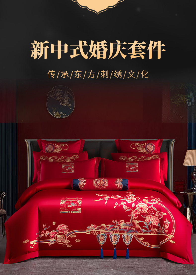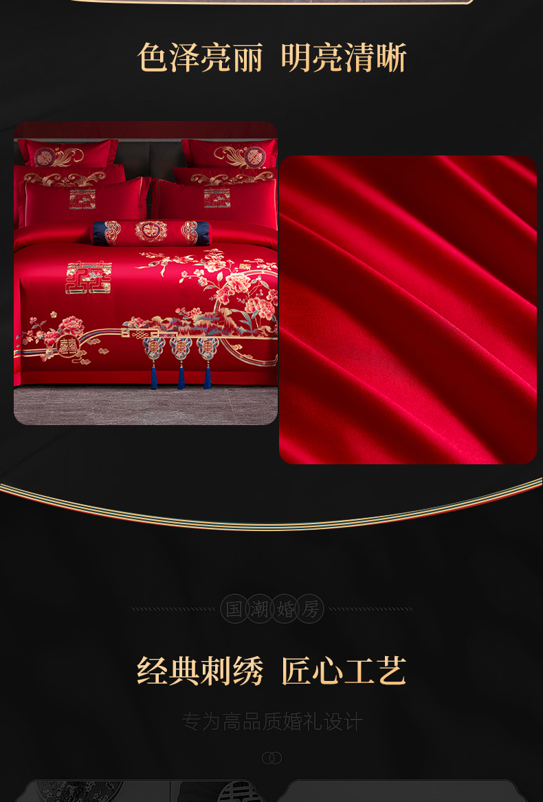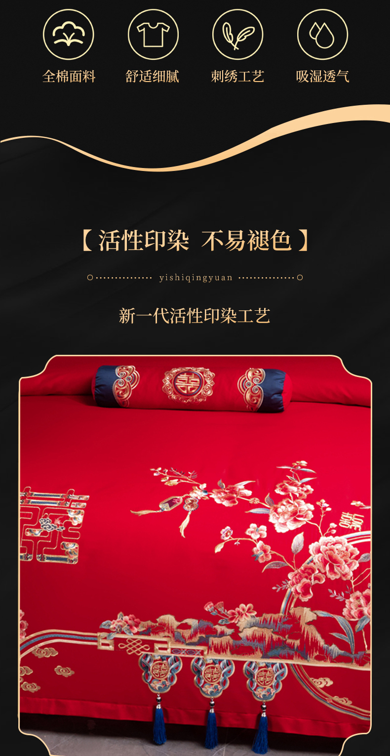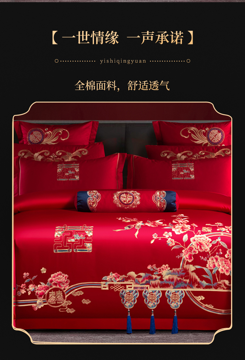 当前位置: 91家纺网 > 商品网购 > 床品套件 > 四件套 > 婚庆四件套 > 慕她家纺 2026慕她大花工艺款全棉纯棉婚庆四件套大红色刺绣结婚床上用品 繁花似锦