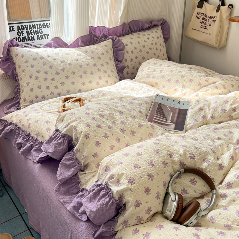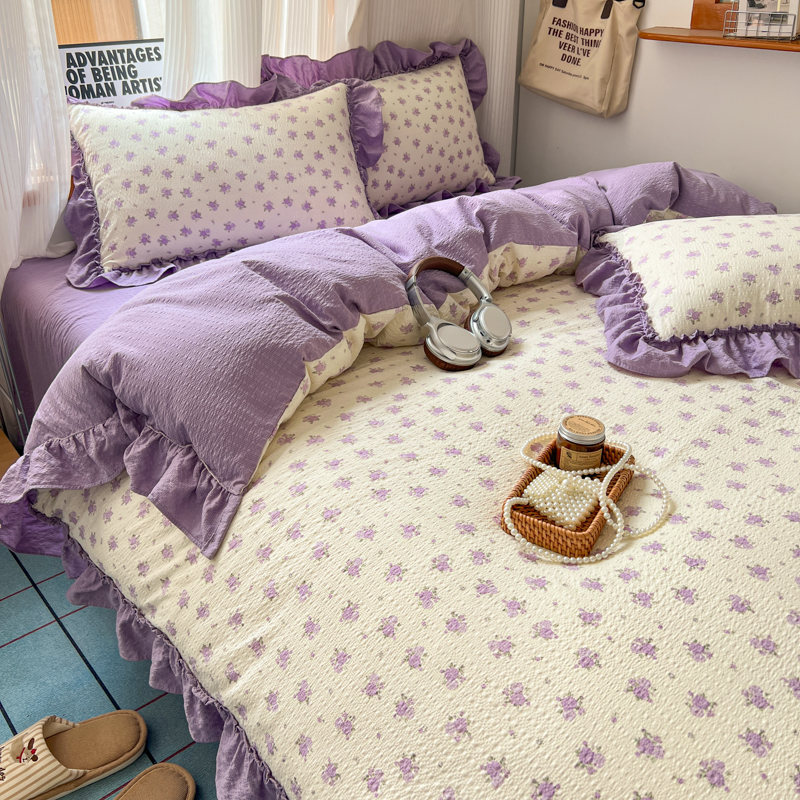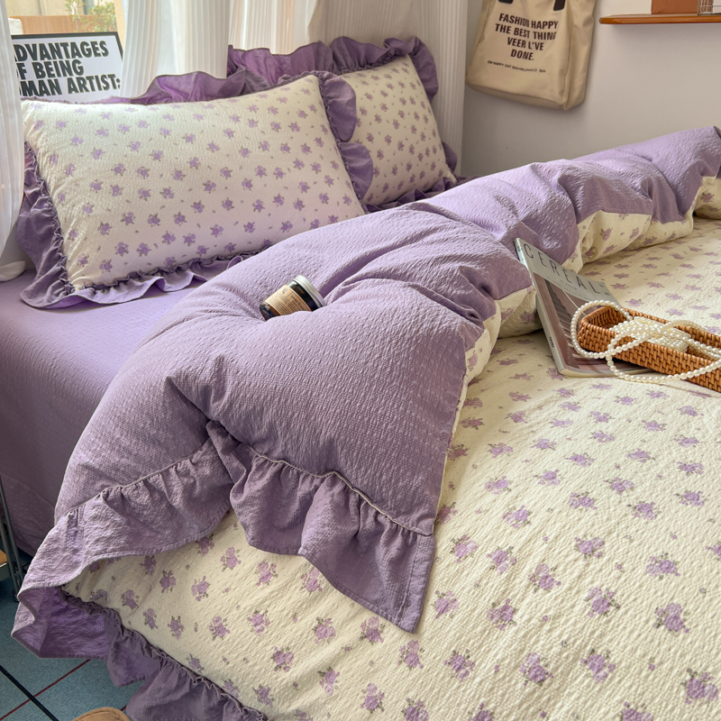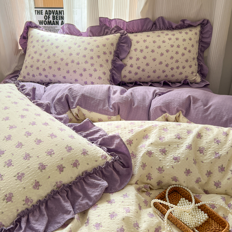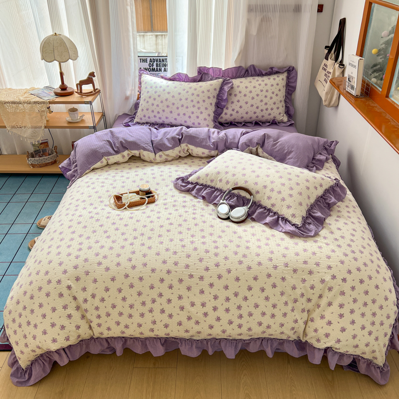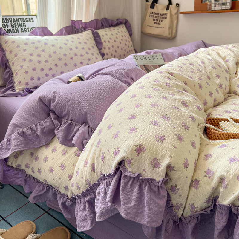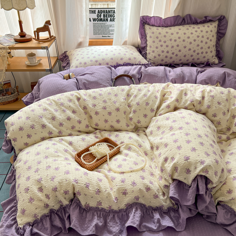 当前位置: 91家纺网 > 商品网购 > 床品套件 > 四件套 > 化纤活性四件套 > 2026新款泡芙纱花边四件套 紫苏