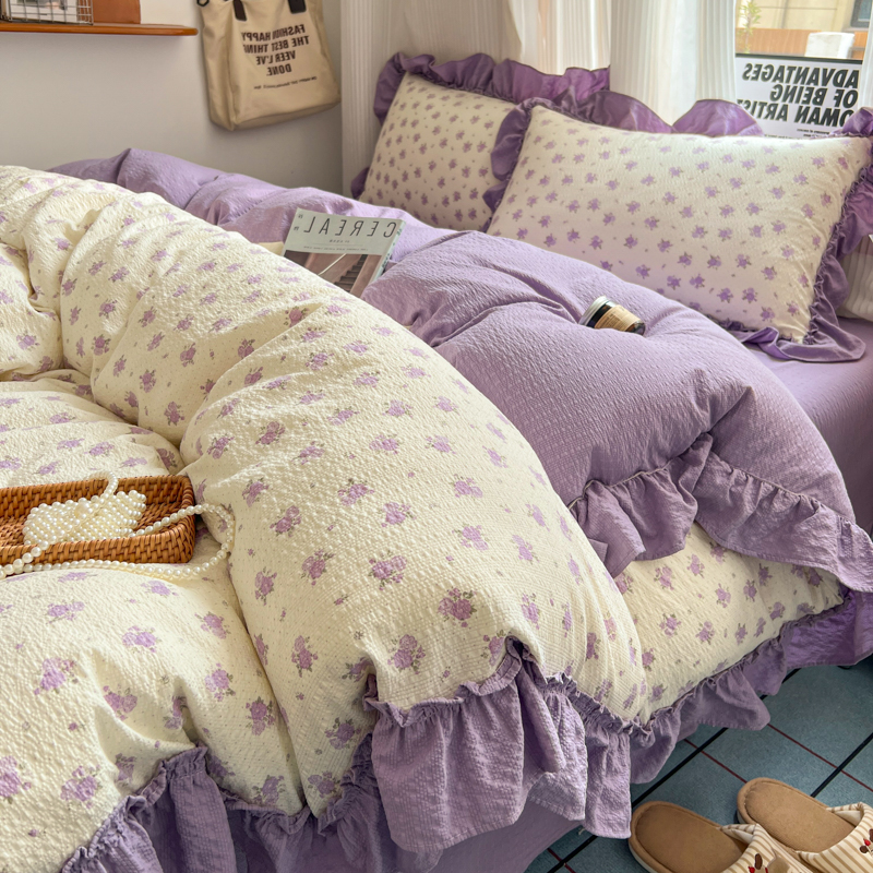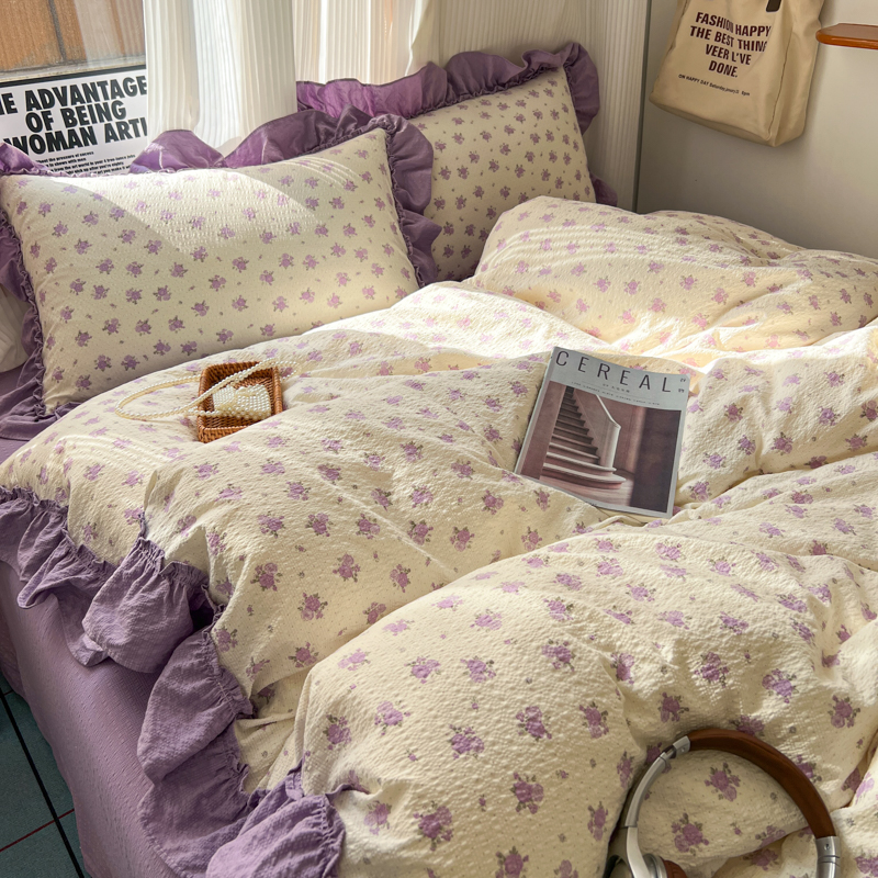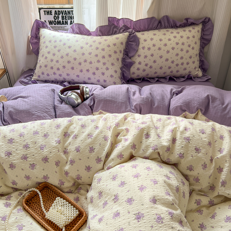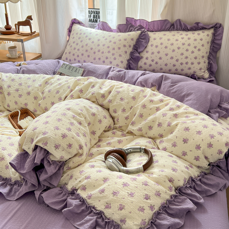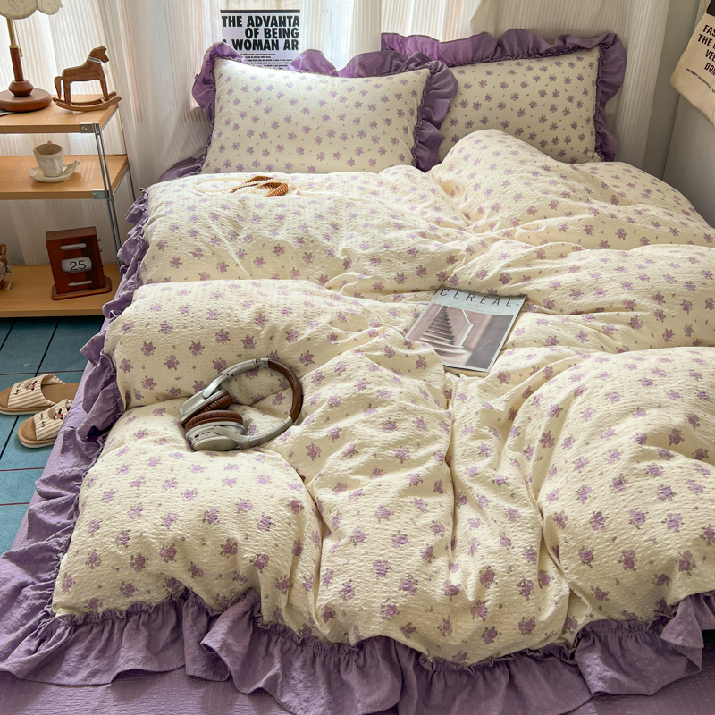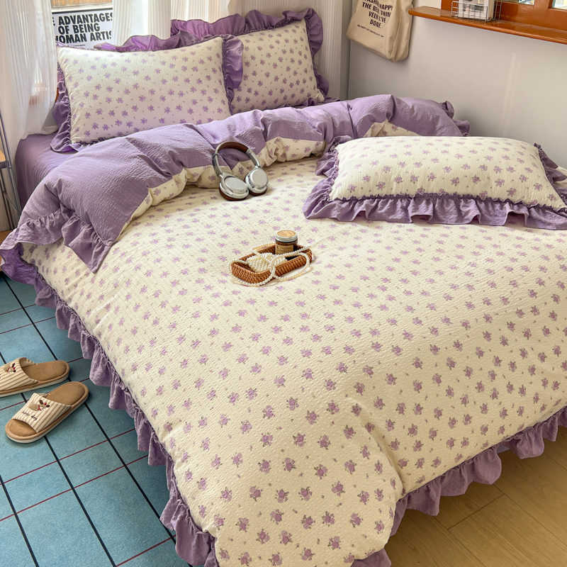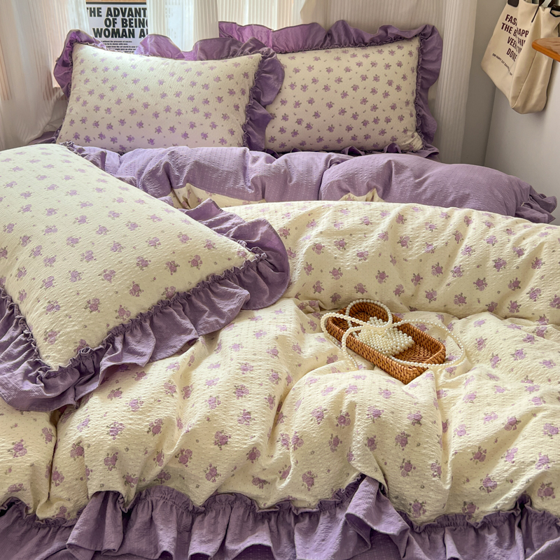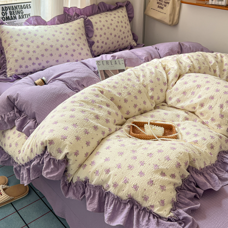 当前位置: 91家纺网 > 商品网购 > 床品套件 > 四件套 > 化纤活性四件套 > 2026新款泡芙纱花边四件套 紫苏