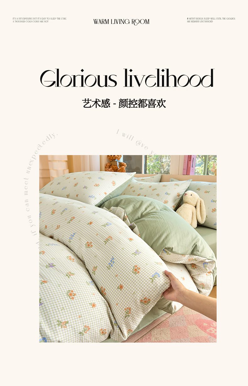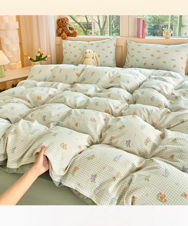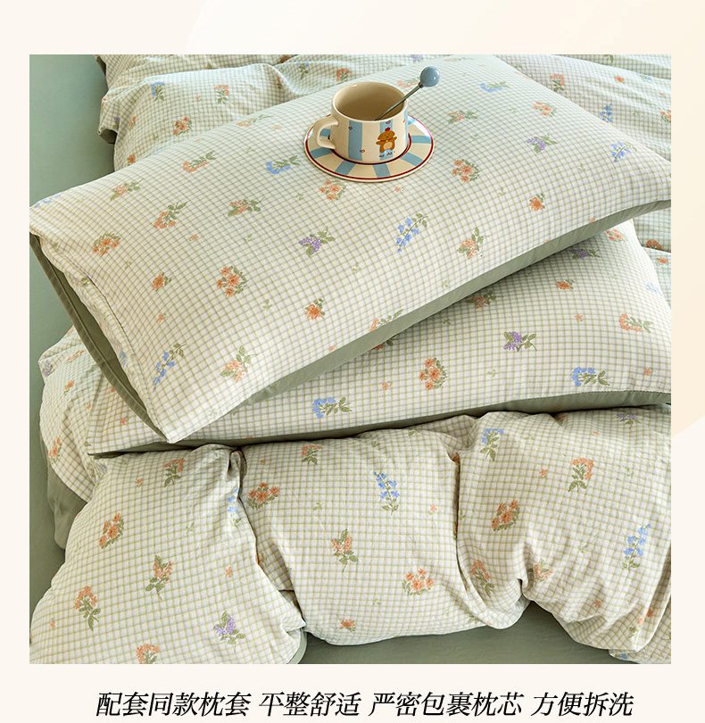 当前位置: 91家纺网 > 商品网购 > 床品套件 > 四件套 > 水洗棉四件套 > 卢赛尔 2026新款古法水洗仿棉云感棉学生三件套四件套 格子-绿