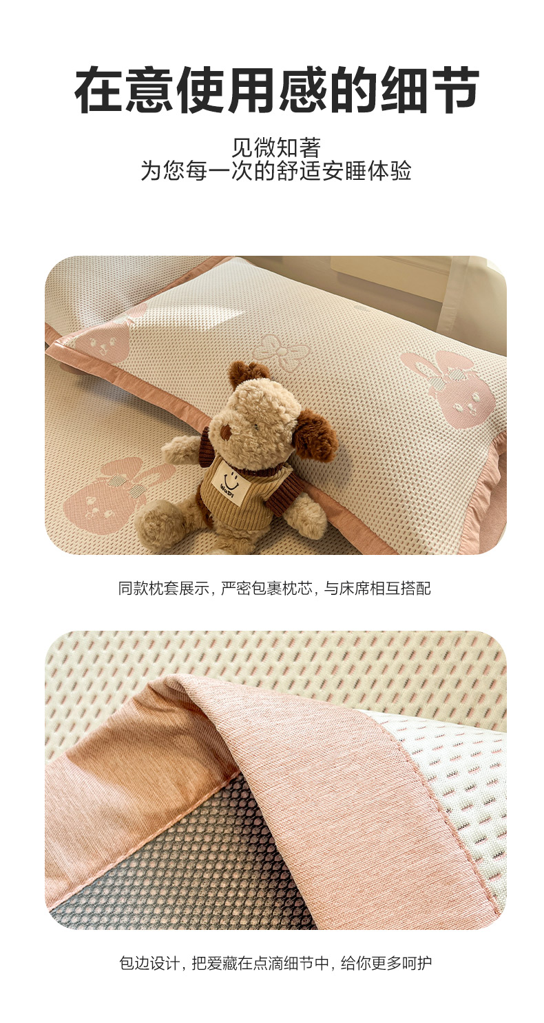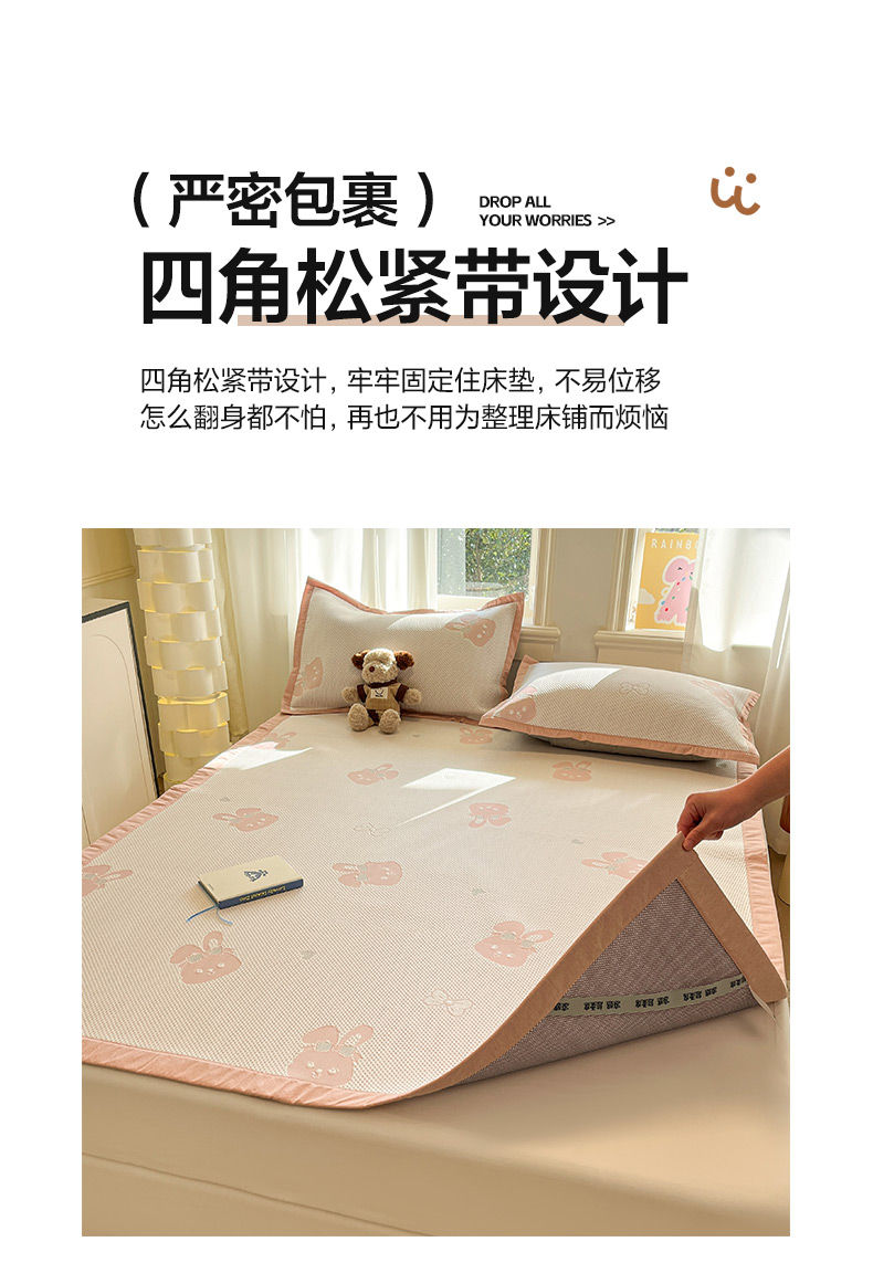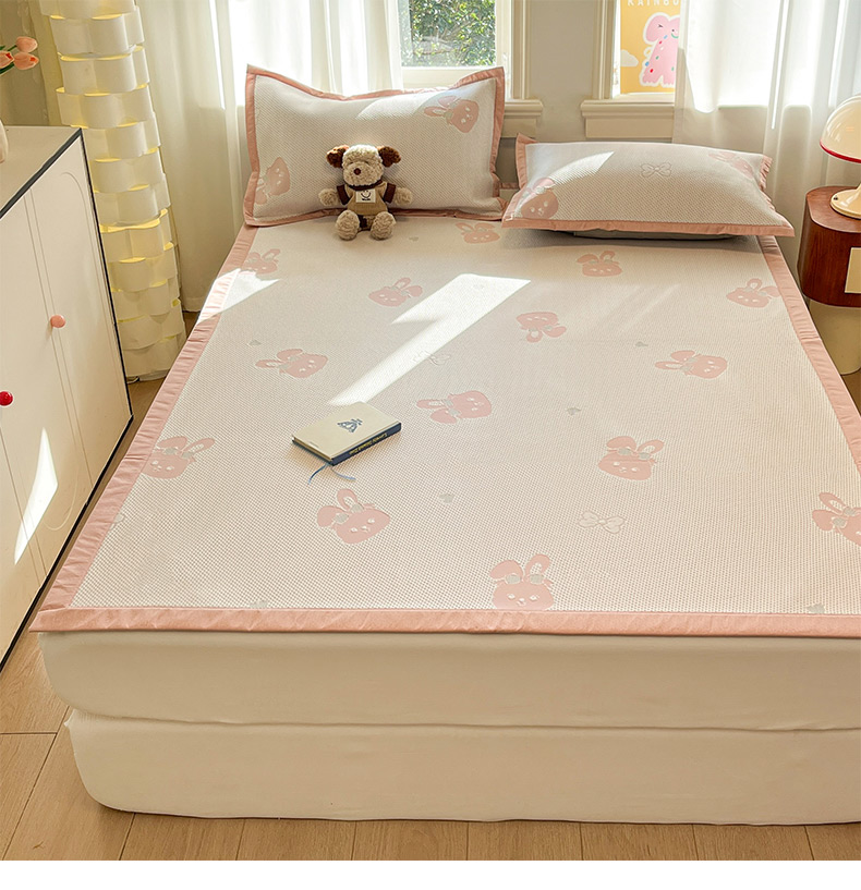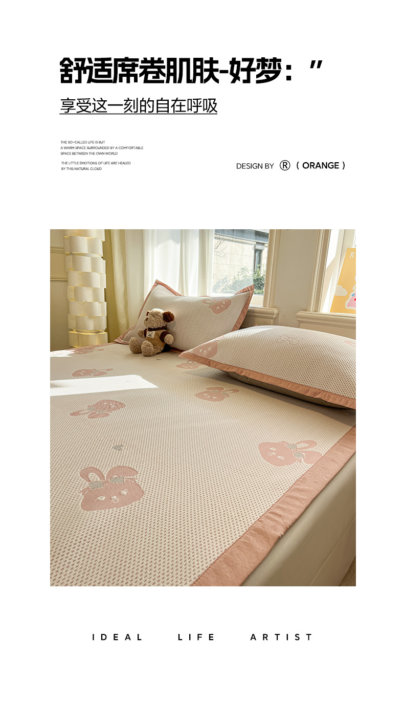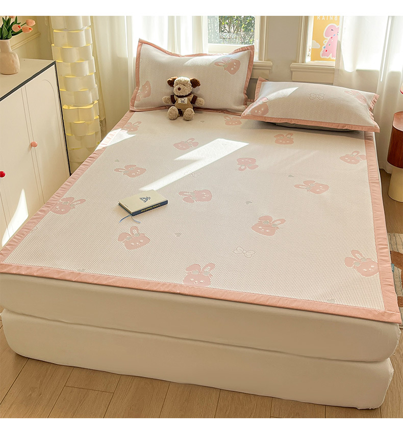 (总)雅居纺家纺 2026新款A类加厚三明治底提花小清新凉感席床笠款凉席席子,粉小兔,蝴蝶结猫咪,领结小猫,平安熊猫,山茶花,太空星球,晚安小狗,小熊熊,星星小熊,悠闲花园