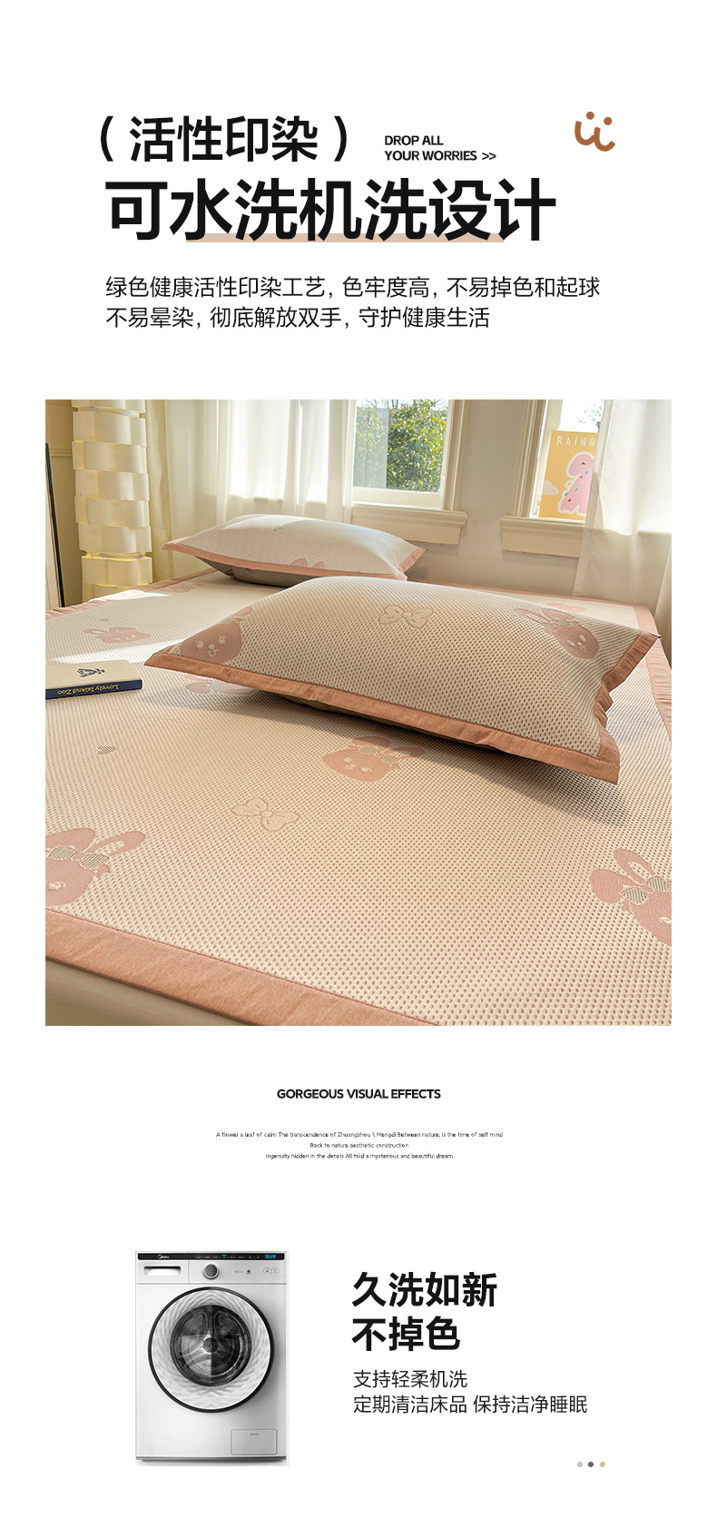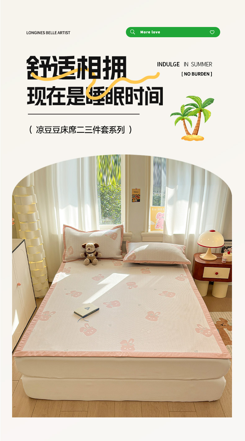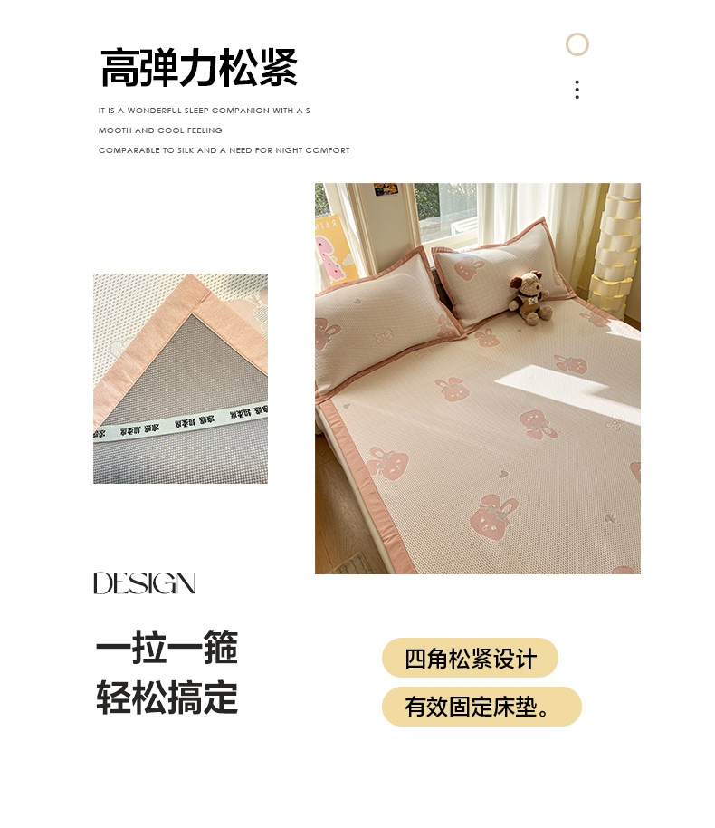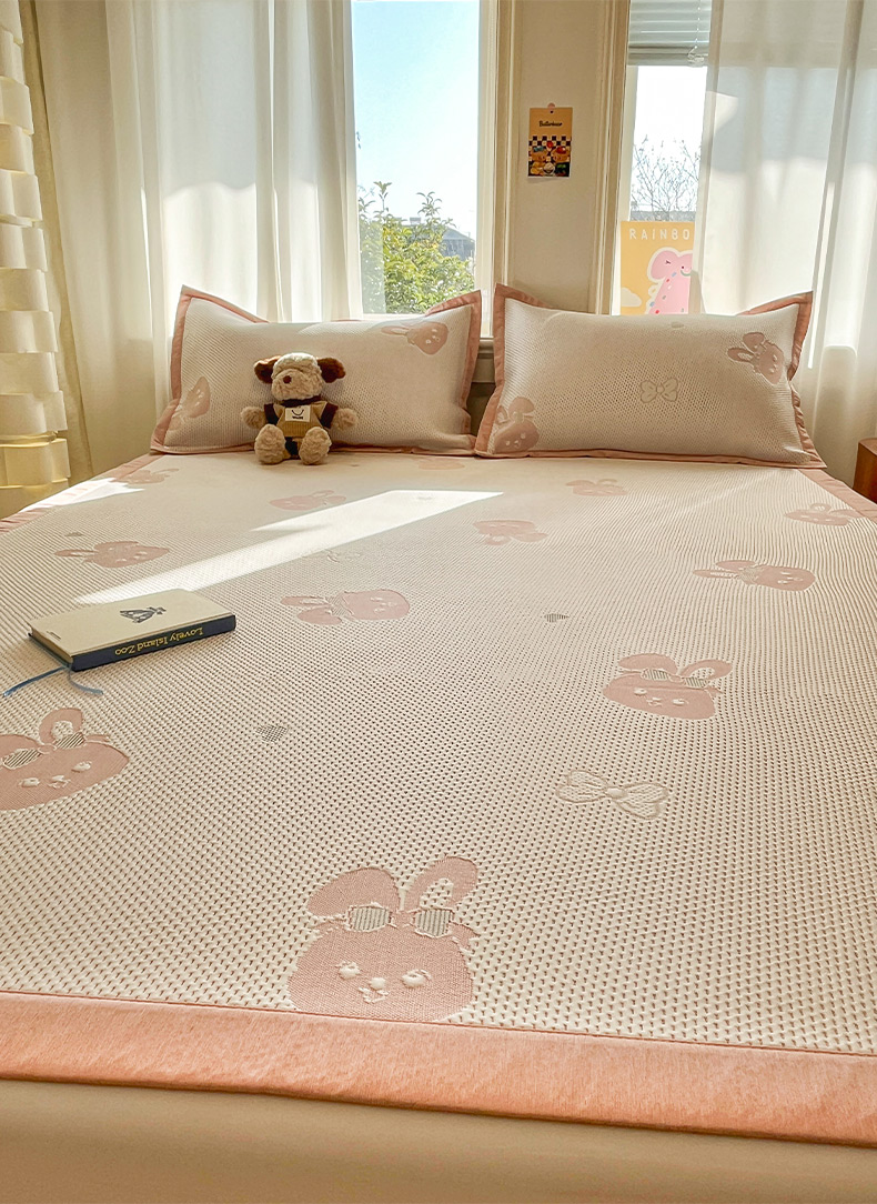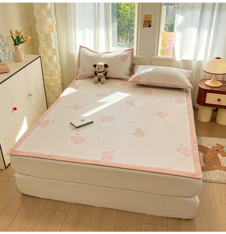 (总)雅居纺家纺 2026新款A类加厚三明治底提花小清新凉感席床笠款凉席席子,粉小兔,蝴蝶结猫咪,领结小猫,平安熊猫,山茶花,太空星球,晚安小狗,小熊熊,星星小熊,悠闲花园