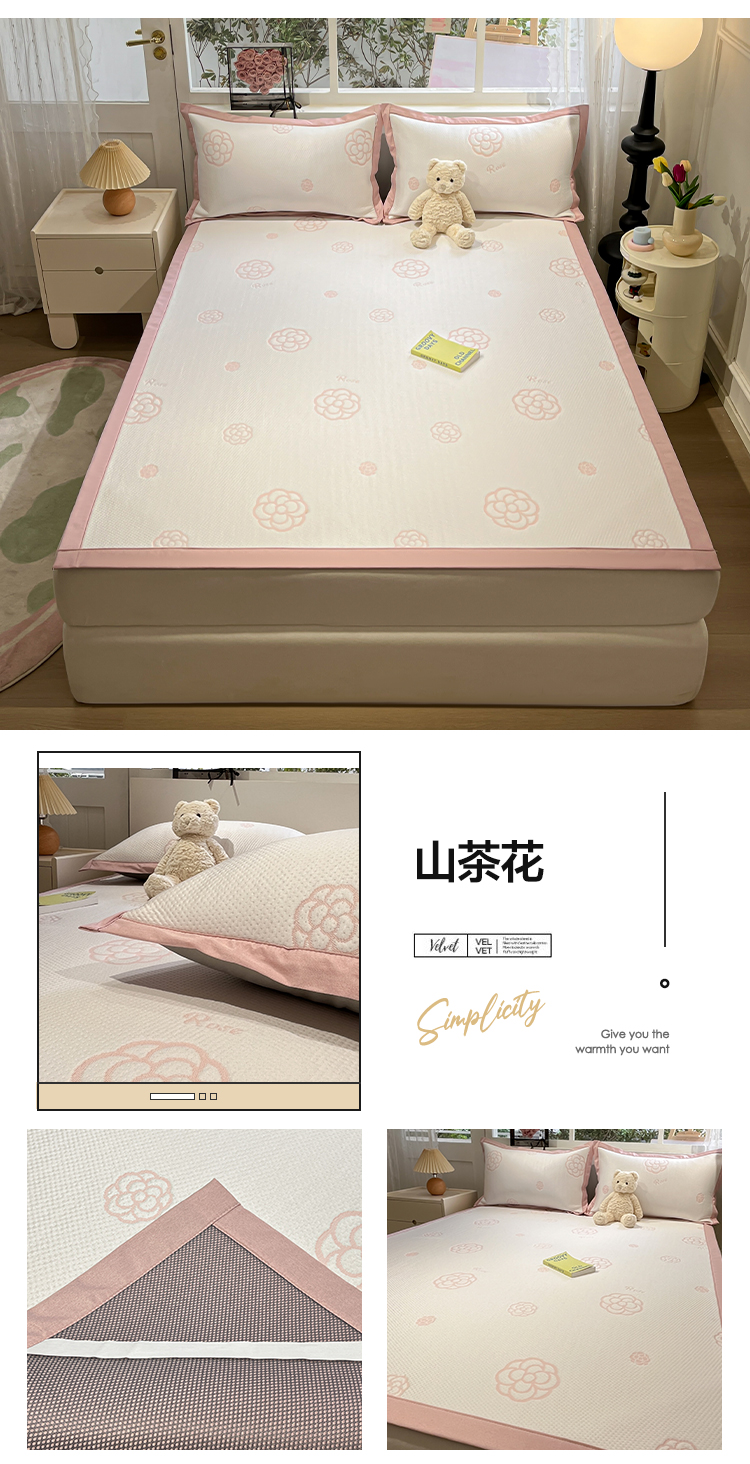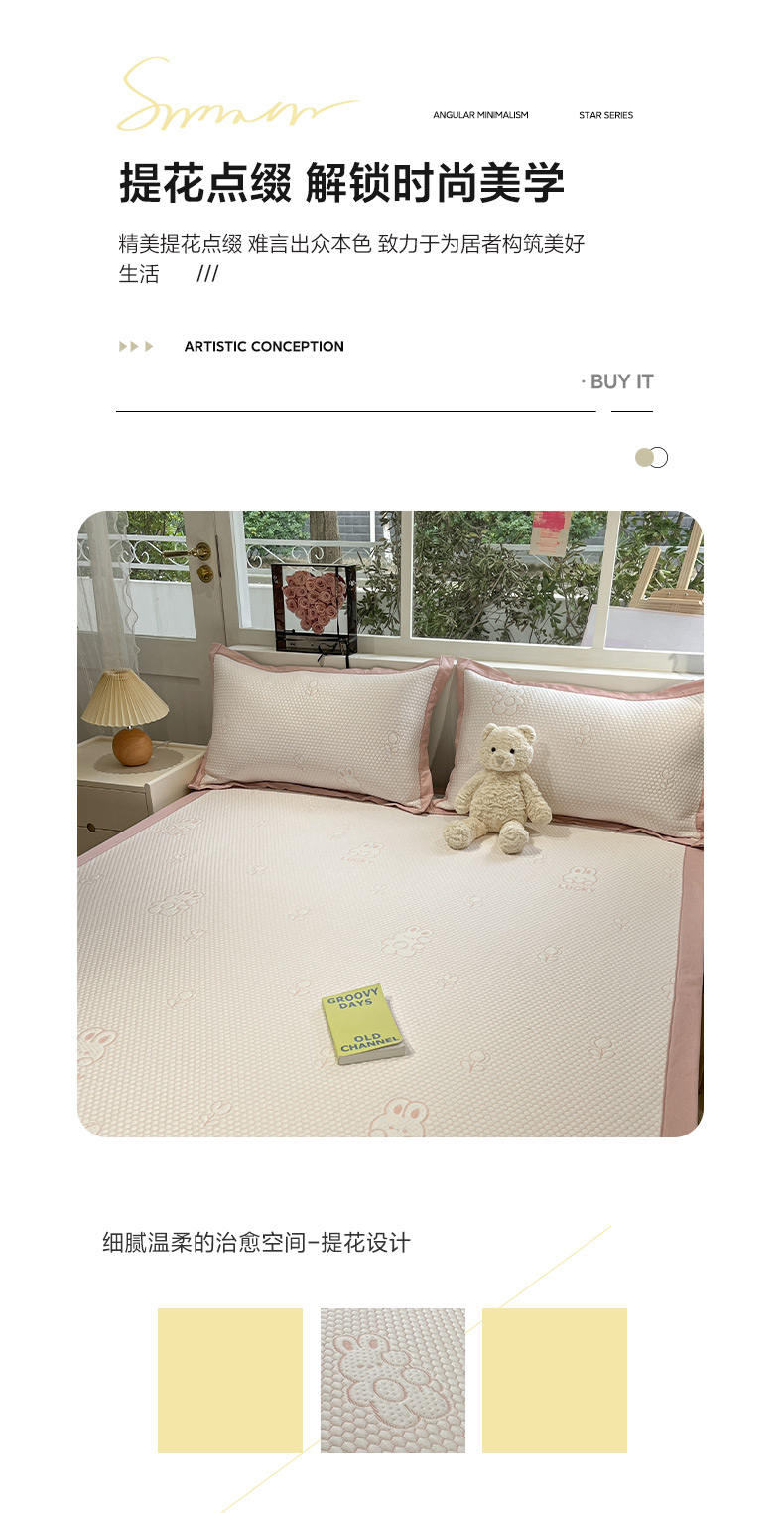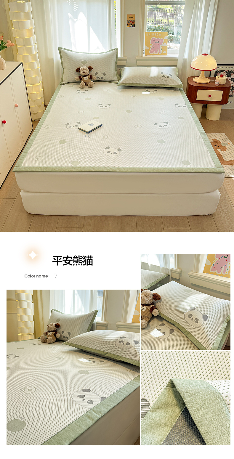 (总)雅居纺家纺 2026新款A类加厚三明治底提花小清新凉感席床笠款凉席席子,粉小兔,蝴蝶结猫咪,领结小猫,平安熊猫,山茶花,太空星球,晚安小狗,小熊熊,星星小熊,悠闲花园