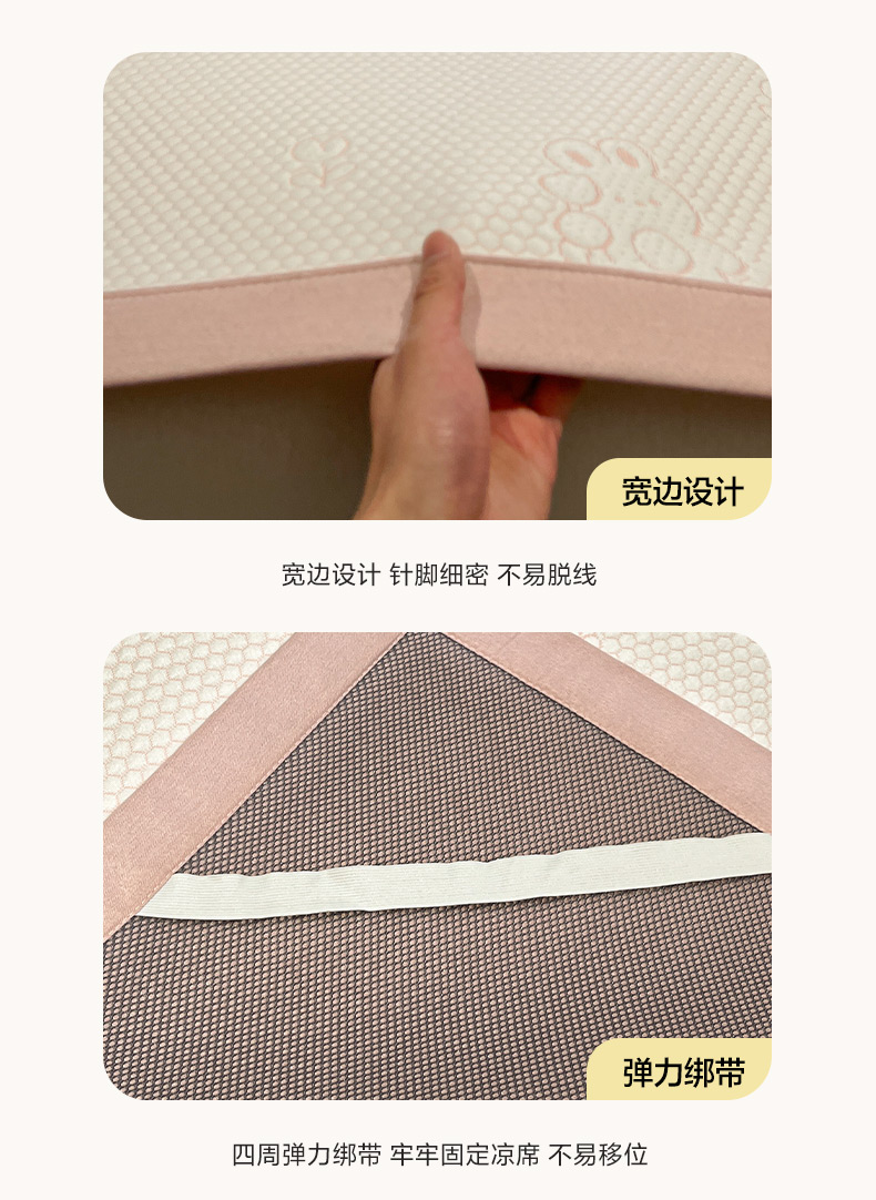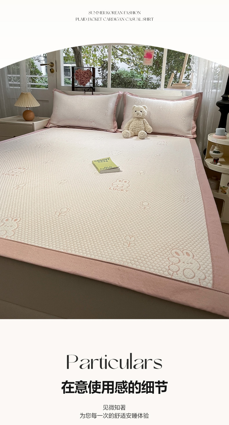 商品名称:雅居纺家纺 2026新款A类加厚三明治底提花小清新凉感席床单款凉席席子 小兔郁金香-粉