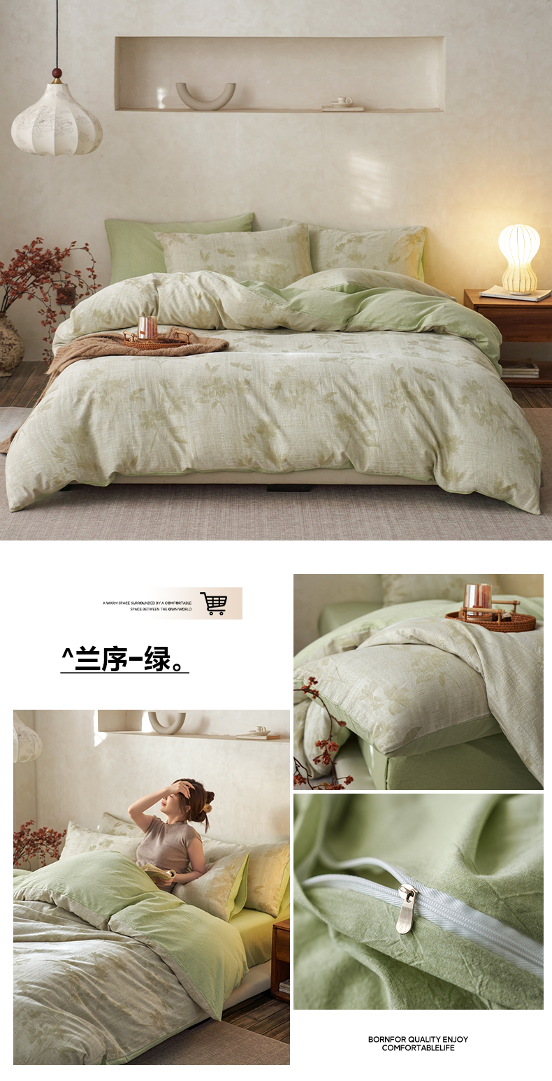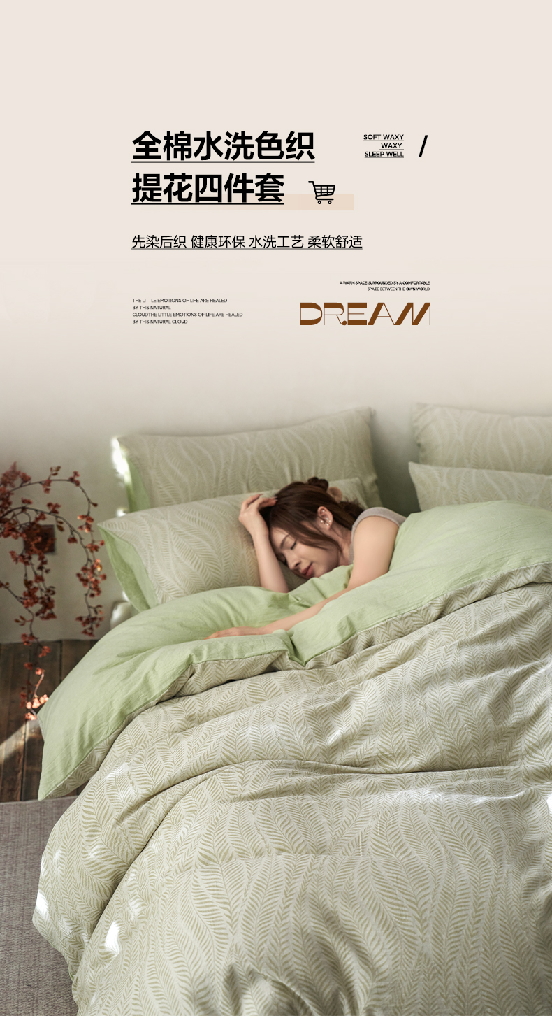 如一 2026新款色织提花全棉水洗棉四件套第一批 叶笙-绿